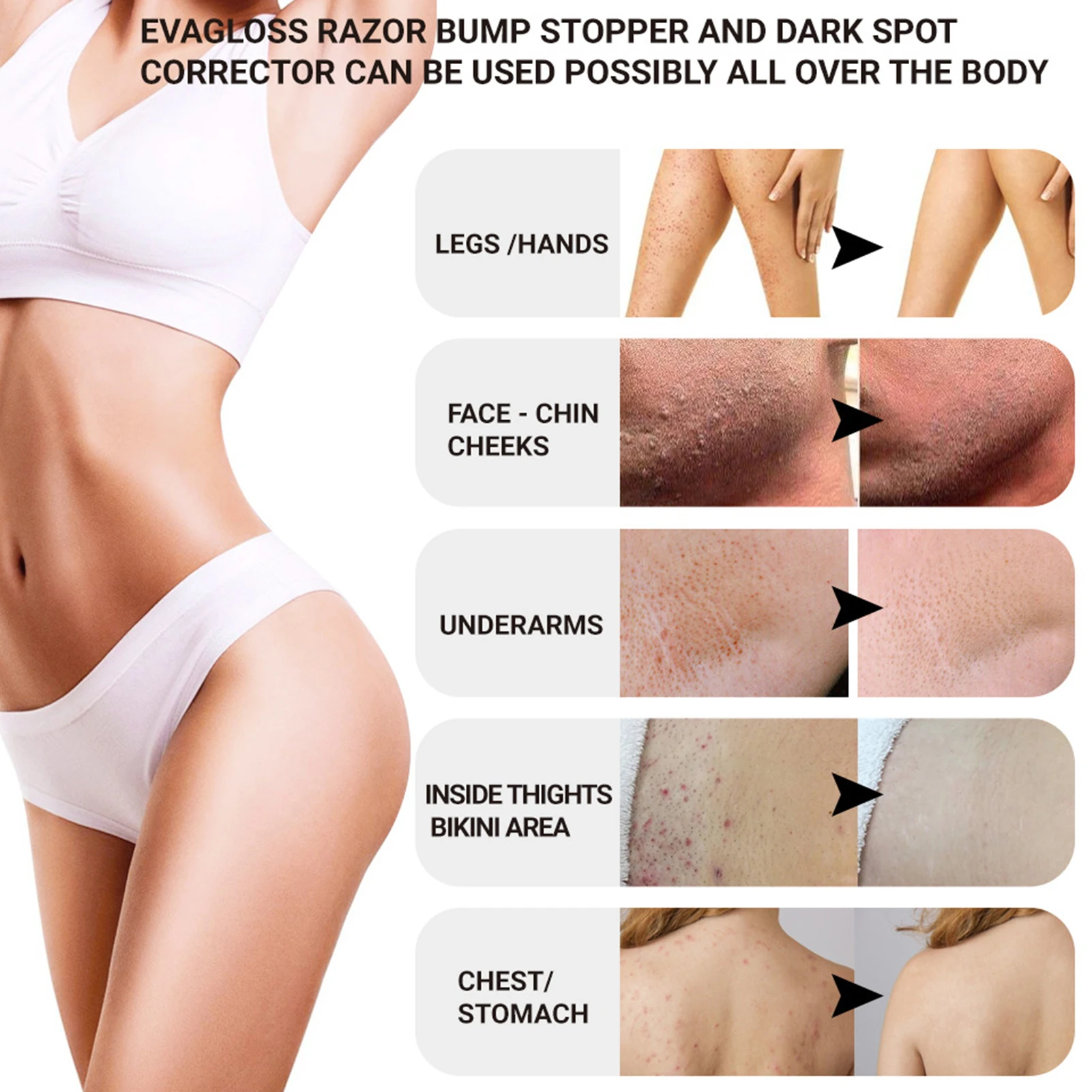 Осветляет кожу: использование нашего вросшего волоса и бритвенного раствора два раза в день может помочь выровнять тонус кожи, уменьшая покраснение и обесцвечивание, связанные с повреждением от солнца и отшелушиванием в течение 6-8 недель.
