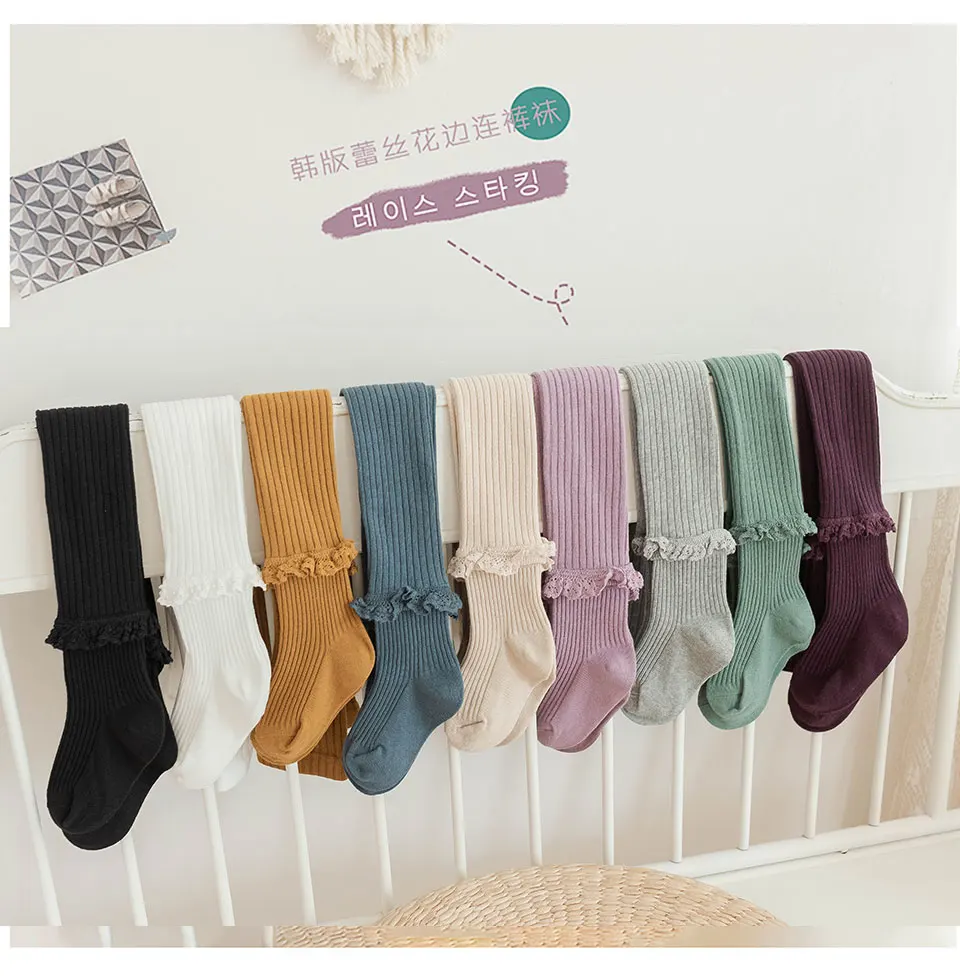 Отзывы о Детские хлопковые ребристые кружевные колготки для детей весенние вязаные