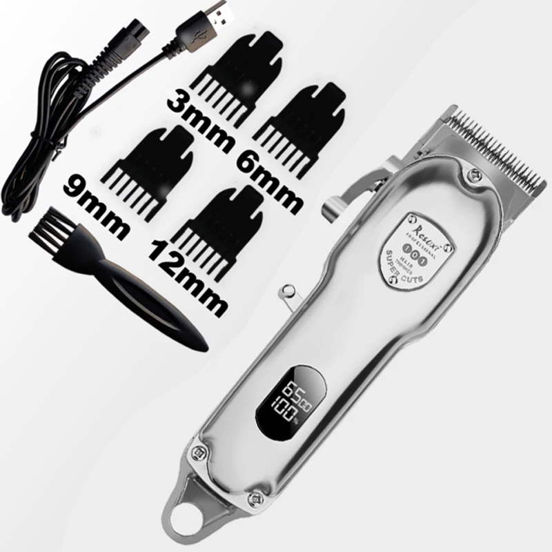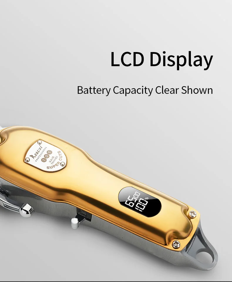 Характеристика:1. ЖК-экран для отображения данных о заряде аккумулятора, вы можете четко видеть оставшуюся батареюПрофессиональный парикмахерский инструмент, или для домашнего использования2,4 направляющие разрезания Нью-Йорк (3/6/9/12 мм)3. Высокая мощность двигателя 6400-6900 об/мин, постоянное количество оборотов, быстрая зарядка и сильная мощность