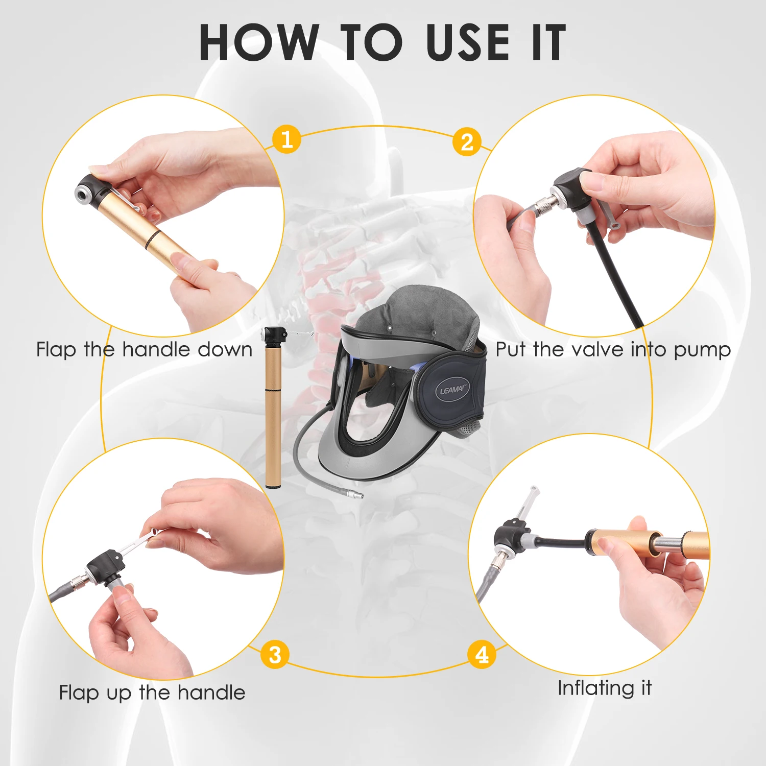 Принесет много комфорта вашей шее дома или на ходу с надувной шеи тягового устройства. Он имеет регулируемый размер, который подходит всем, мягкая подкладка, дышащая ткань, несколько воздушных отверстий, легкий ручной насос, ремешок на липучке и съемный бандаж на шею. Физиологически облегчают сжатие шеи, боль в шее, жесткость шеи и другие признаки, вызванные спондилом шейки матки.