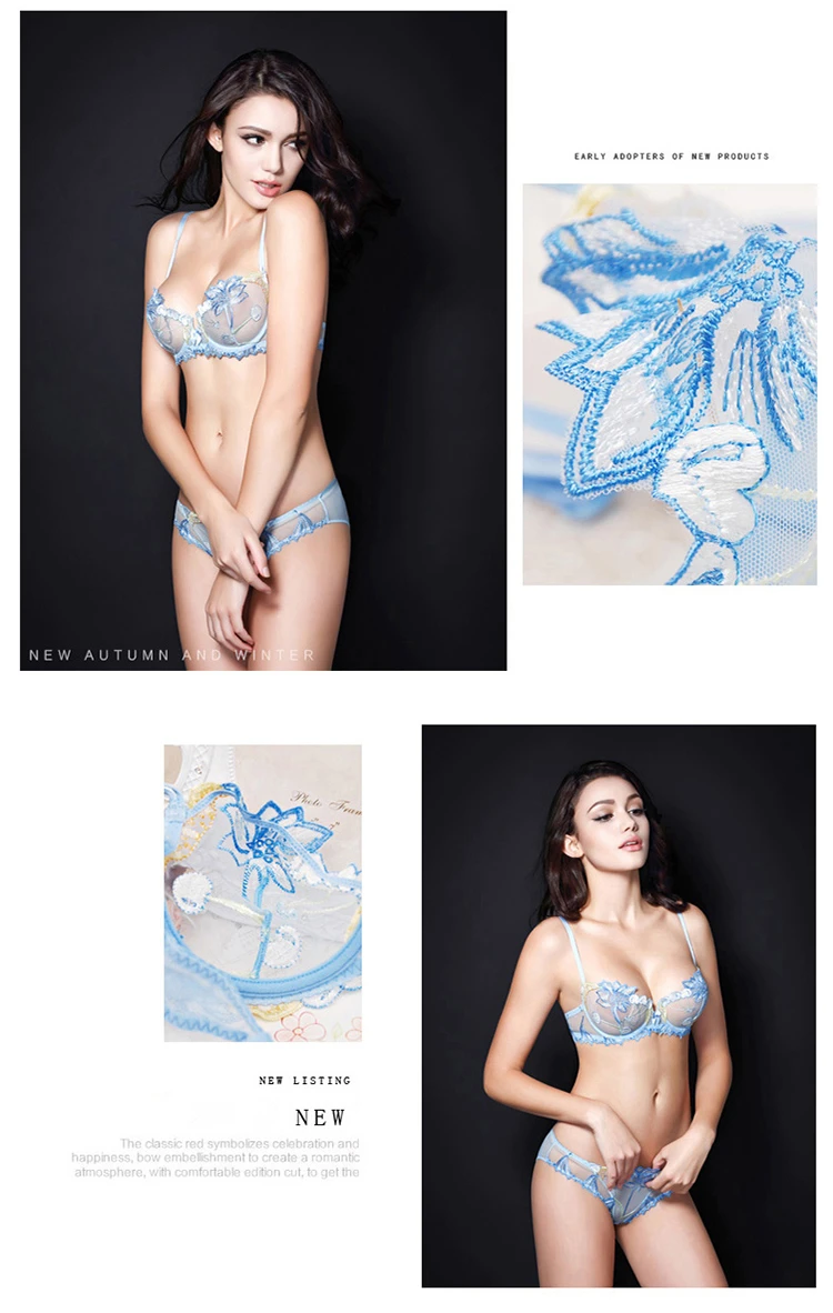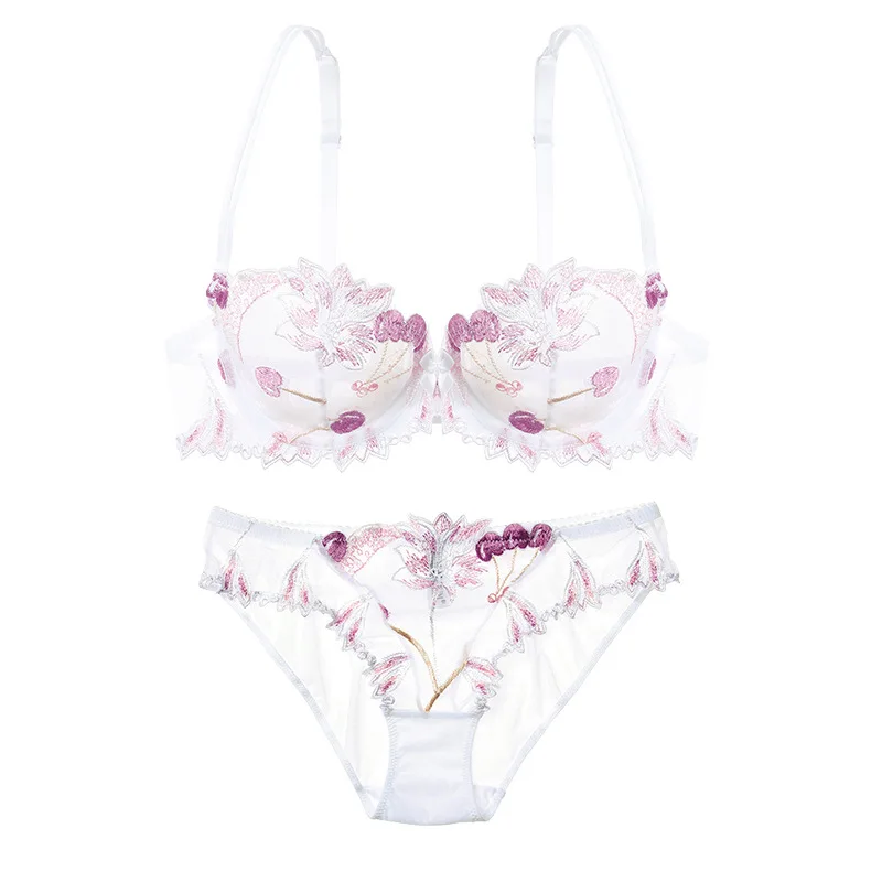 Отзывы о Комплект нижнего белья женский кружевной прозрачный ультратонкий с вышивкой -
