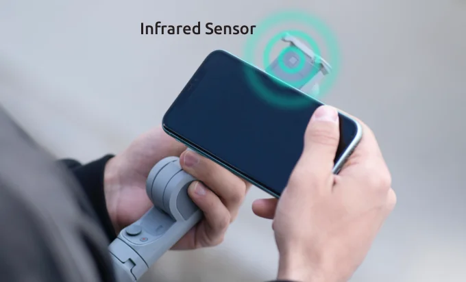 ATOM 2 имеет встроенный инфракрасный датчик в держателе для телефона gimbal, который может активно ощущать состояние крепления телефона, чтобы предотвратить запуск двигателя до установки телефона-помогает избежать повреждения двигателя.