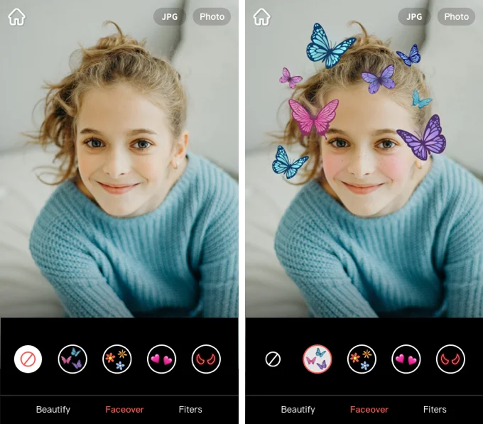 Благодаря распознаванию лиц AI режим Faceover позволяет пользователям автоматически покрывать лица либо пикселями, либо выбранной мультяшной наклейкой во время отслеживания лица.