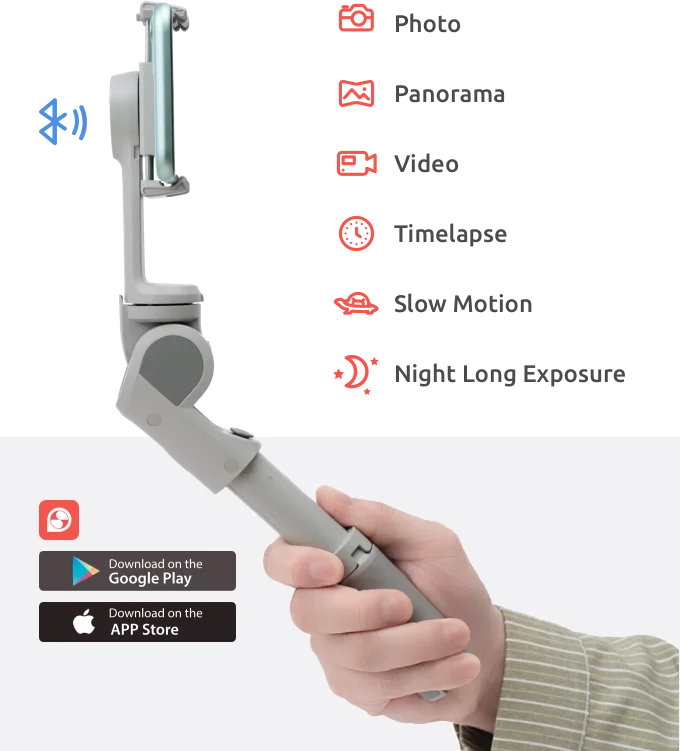Аксессуары для переноски всегда громоздки, поэтому ATOM 2 устраняет необходимость в дополнительной передаче, она имеет раздвижную ручку, позволяя делать лучшие селфи снимки с более широким полем зрения. Со встроенным штативом, вы можете выдержать его прямо на любой плоской поверхности для hands-free съемок техники, такие как промежуток времени, автоматическое отслеживание и т. Д. Получить снимок каждый раз и везде!