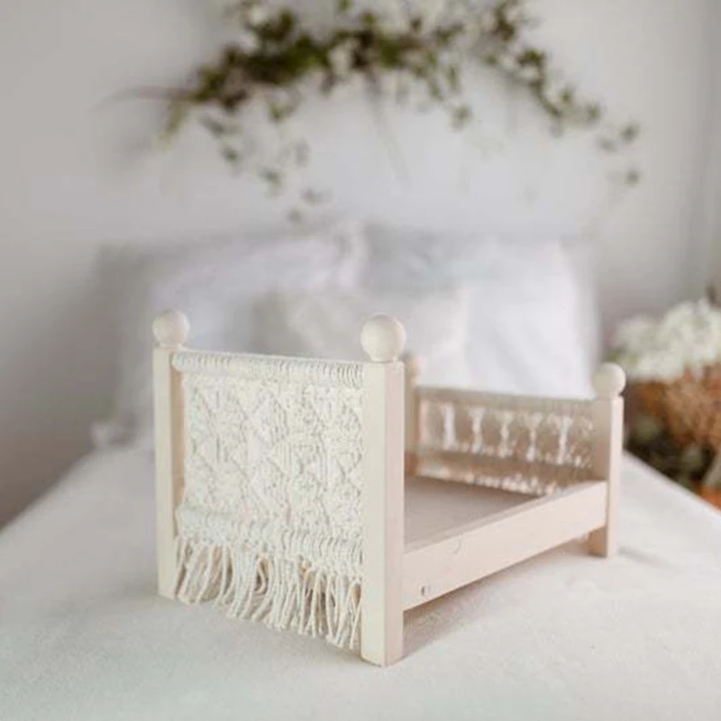 Отзывы о Newborn Photography Props Bed Vintage Mini Cotton Rope Weave Wooden Baby Posing Infant Crib For Studio Photo Shoot Accessory | Мать и
