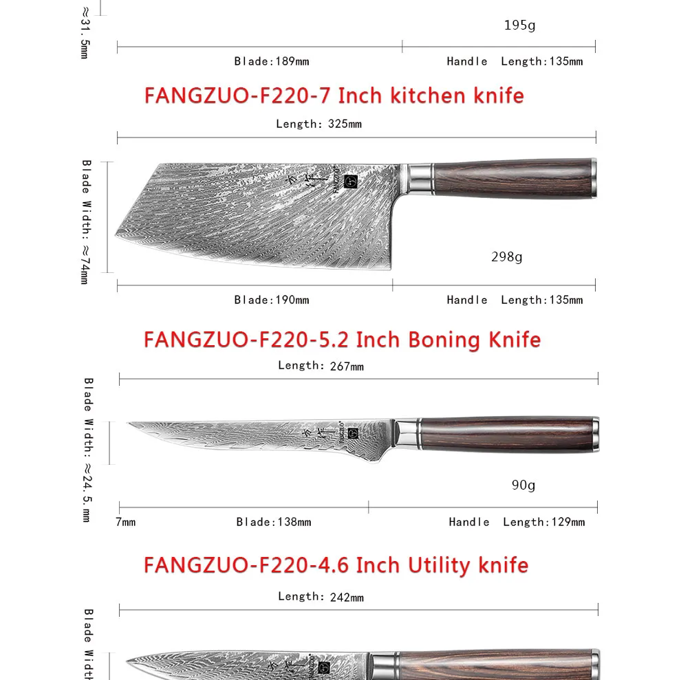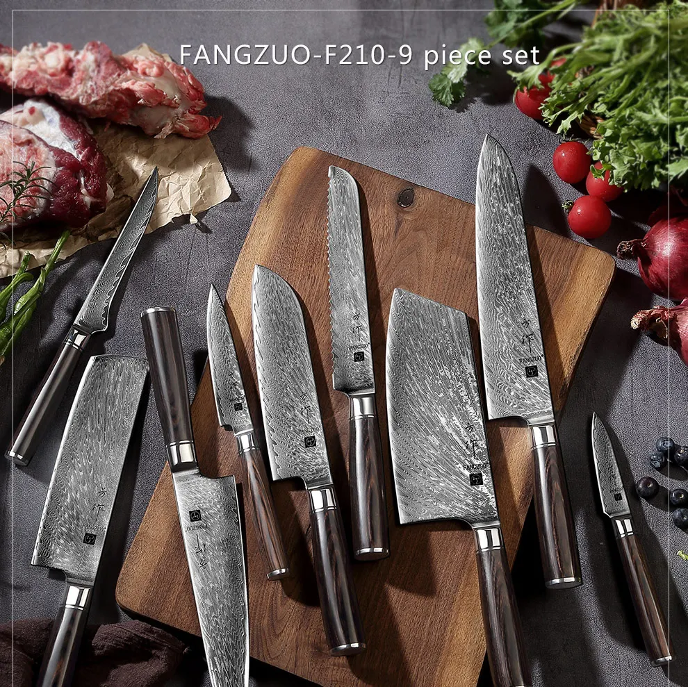 Отзывы о Набор кухонных ножей FANGZUO из дамасской стали 1-9 шт. | Дом и сад