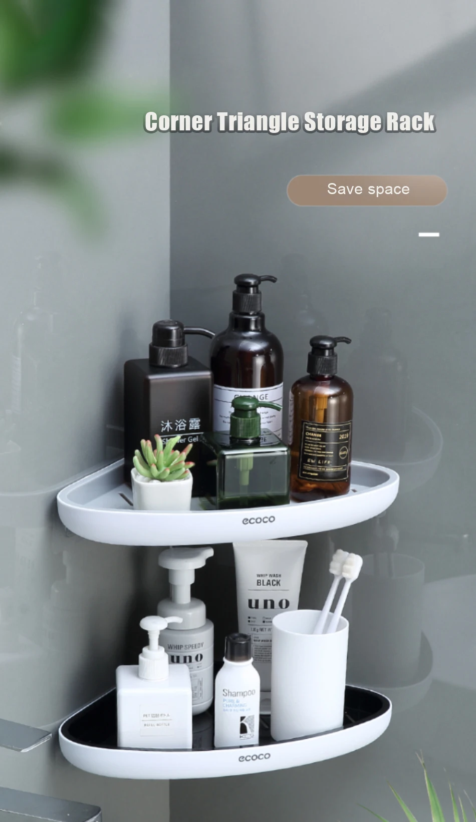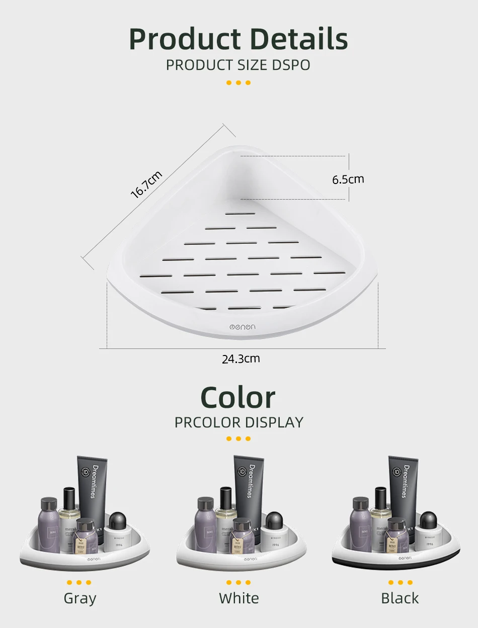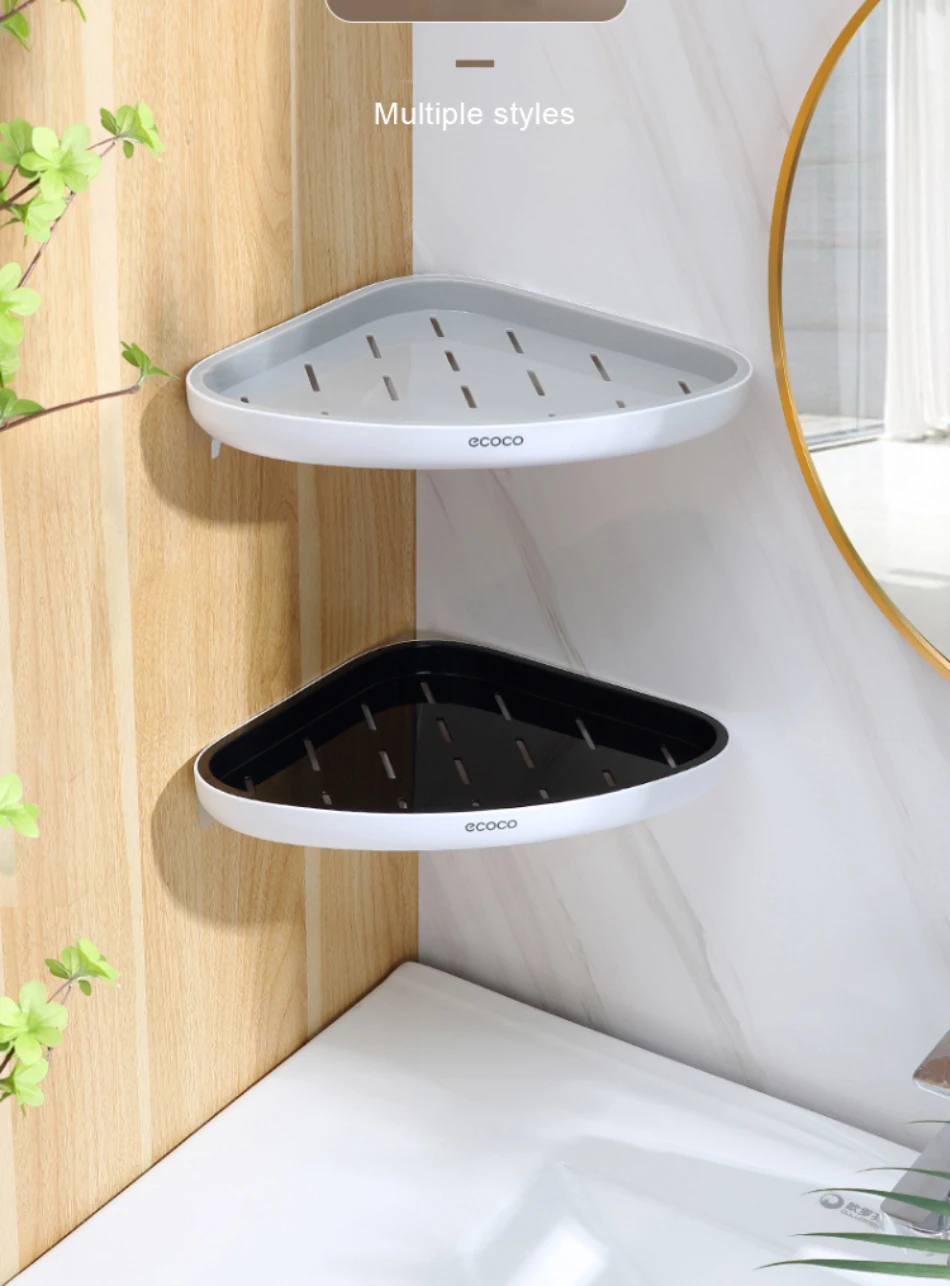 1. Не требующая перфорации настенная угловая стойка для хранения в ванной комнате, рациональное использование пространства.