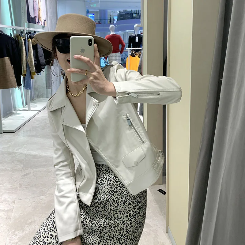 Отзывы о Куртка женская кожаная на молнии приталенная Байкерская верхняя одежда с