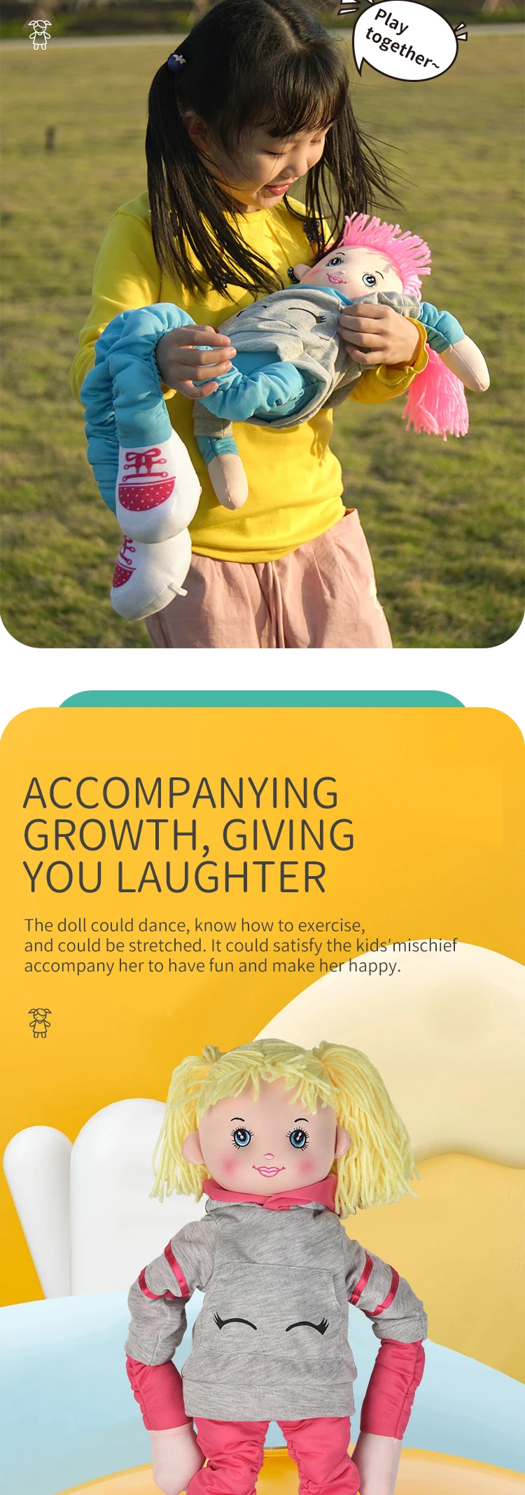 Этот мягкий и безопасный кукла обеспечивает партнеров для детей, которые любят спорт, потому что, когда дети танец, прыгать и вращаться, он может растянуться и сделают ваших девочек happy. Это хороший друг для выращивания для девочек.