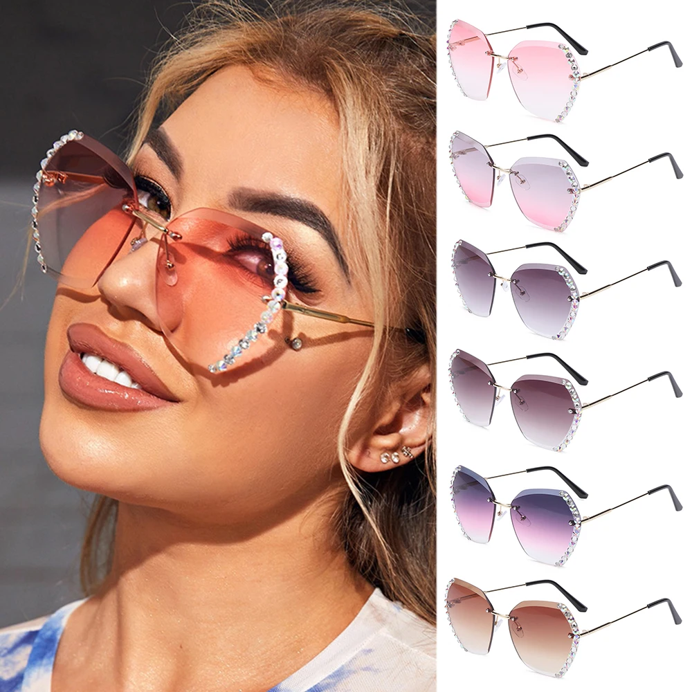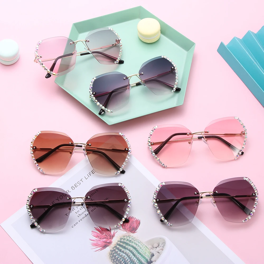 * Идеальный дизайн-оправа без оправы и изящные металлические дужки делают Квадратные Солнцезащитные очки с бриллиантами очень стильными и чувственными различные солнцезащитные очки с градиентными линзами для вас, чтобы они хорошо сочетались с одеждой.