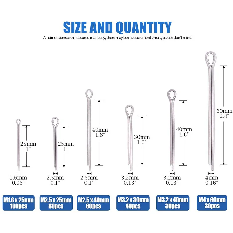 [Product Material]: All the cotter pins are made of 304 Stainless Steel, rust and corrosion resistant, durable and steady not easy to break.