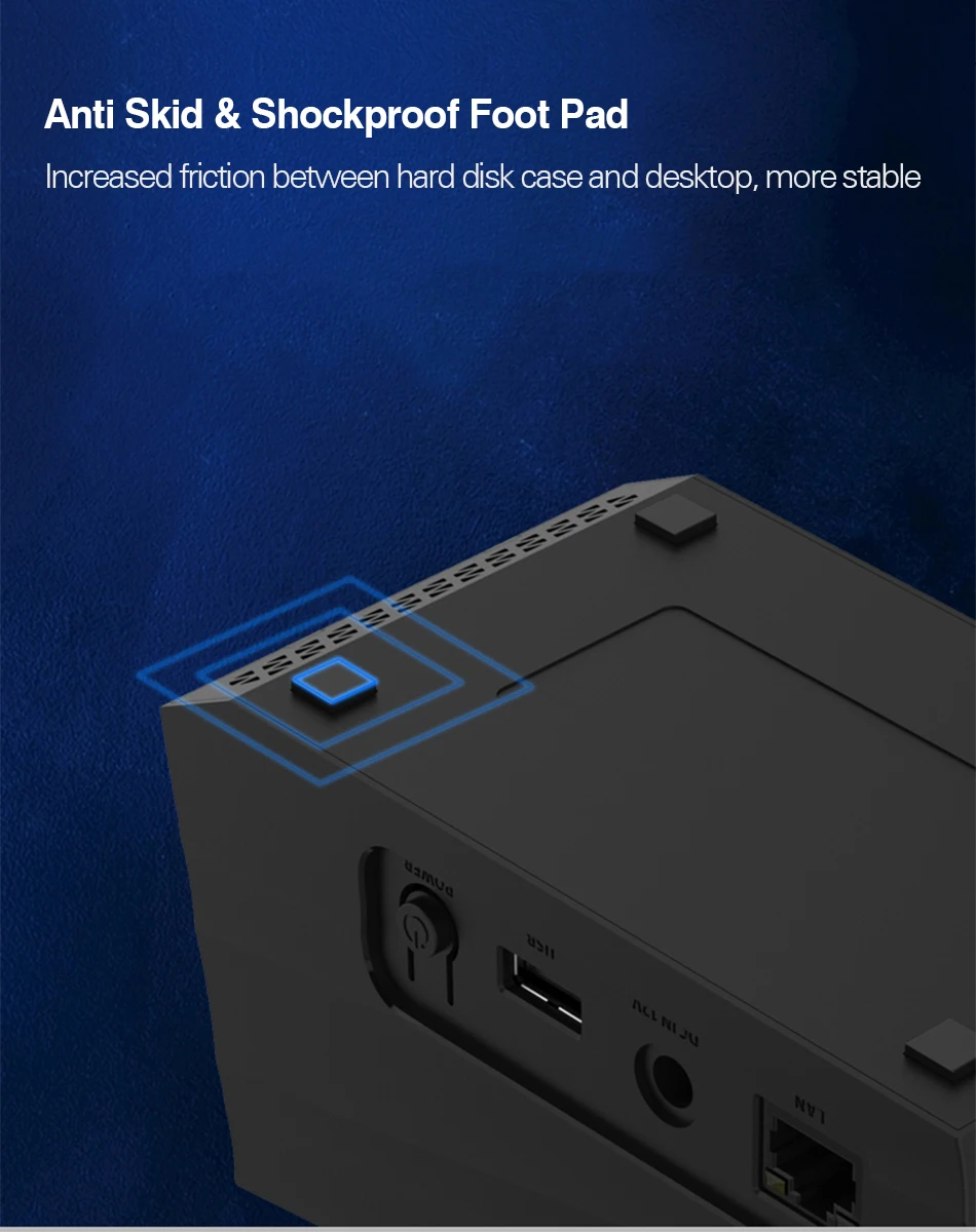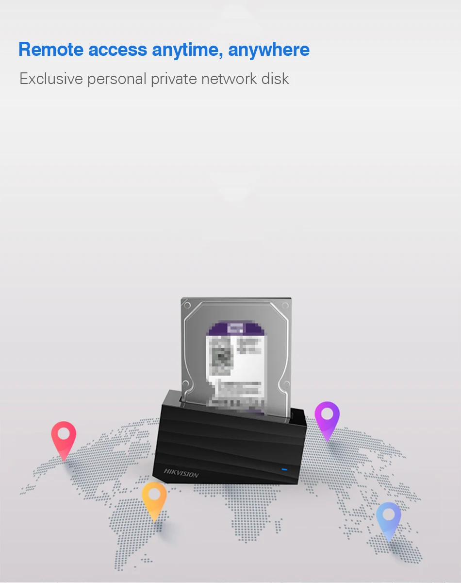 2,5/3,5 дюймов HDD/SSD. Он может поддерживать функцию загрузки личных и семейных фотографий или видео, секретного хранения, обмена с семьей. Пользователи могут получать доступ к файлам и делиться ими через приложение в любом месте в любое время.