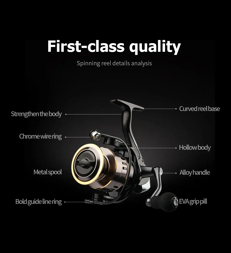 + Металлическая катушка, жирное направляющее кольцо, ручка из сплава, ручка из ЭВА, имеет высококачественный корпус.