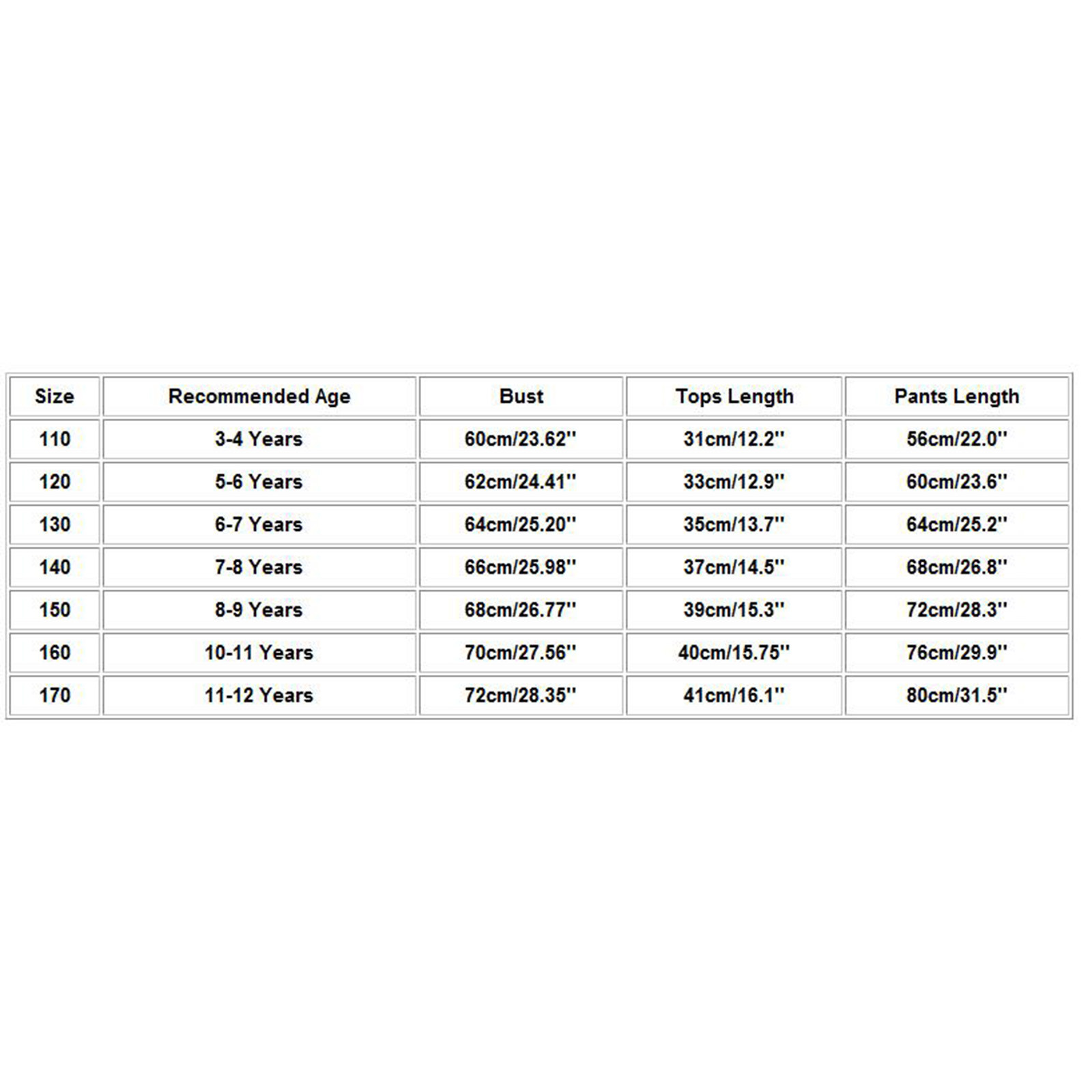 | Размер | Рекомендуемый возраст | Бюст | Длина топа | Длина брюк |