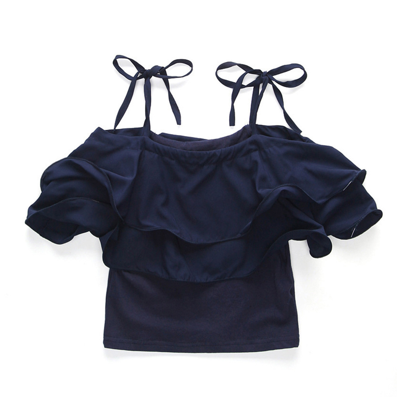 Отзывы о Модная детская одежда для девочек летняя футболка на бретельках с открытыми