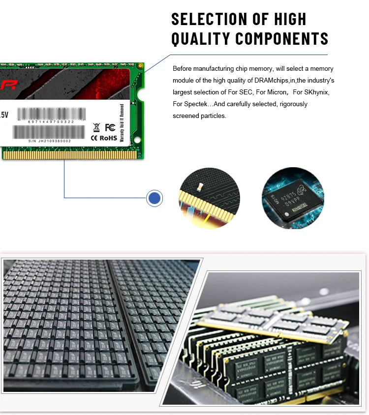 1-Chips JUHOR использует тщательно протестированные частицы, совместимые с широким спектром компьютеров, также совместимые с платформами Intel и AMD. (Например: Samsung, Hynix, микрон, магний, Южная Азия Yisheng, Elpida), отправляется на основе случайного выбора.