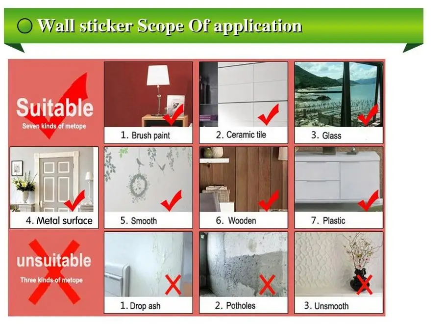 Может быть применен к любым гладким и чистым поверхностям, таким как стены, двери, окна, шкаф и т. д.