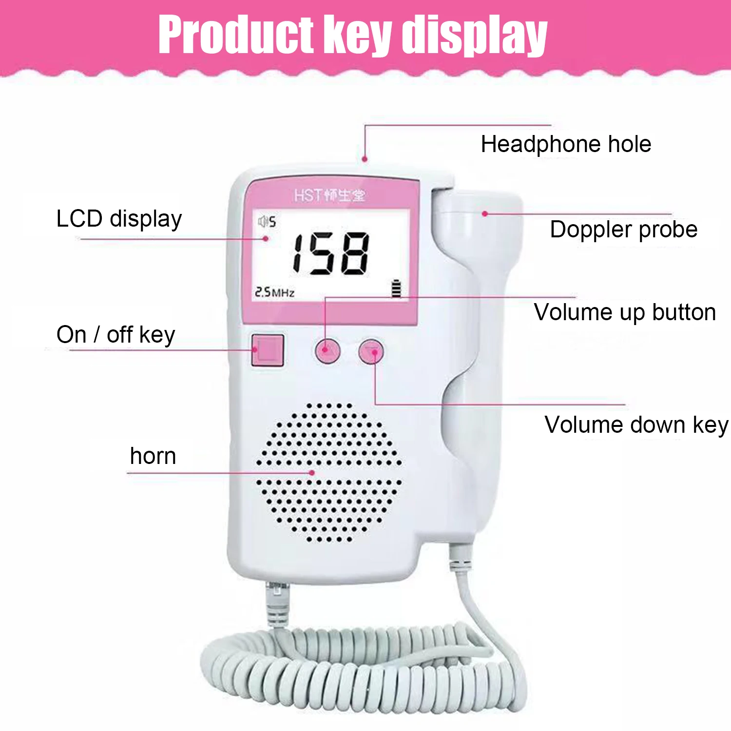 2. Зонд обладает высокой чувствительностью, водонепроницаемостью и прочностью и может быть разобран. Он отдельно разработан вне основной машины измерителя сердечного ритма плода, поэтому его легко заменить, водонепроницаемый и прочный.