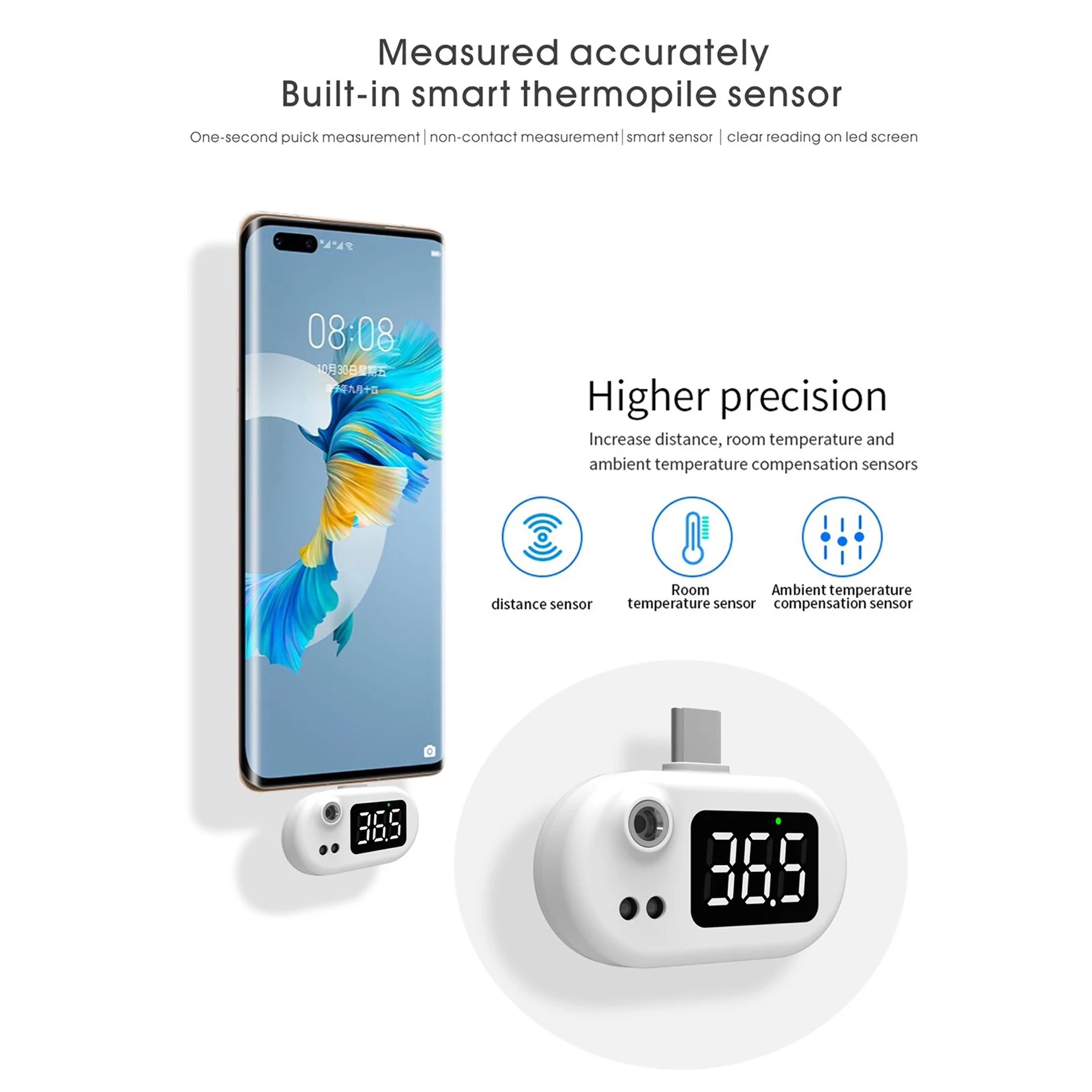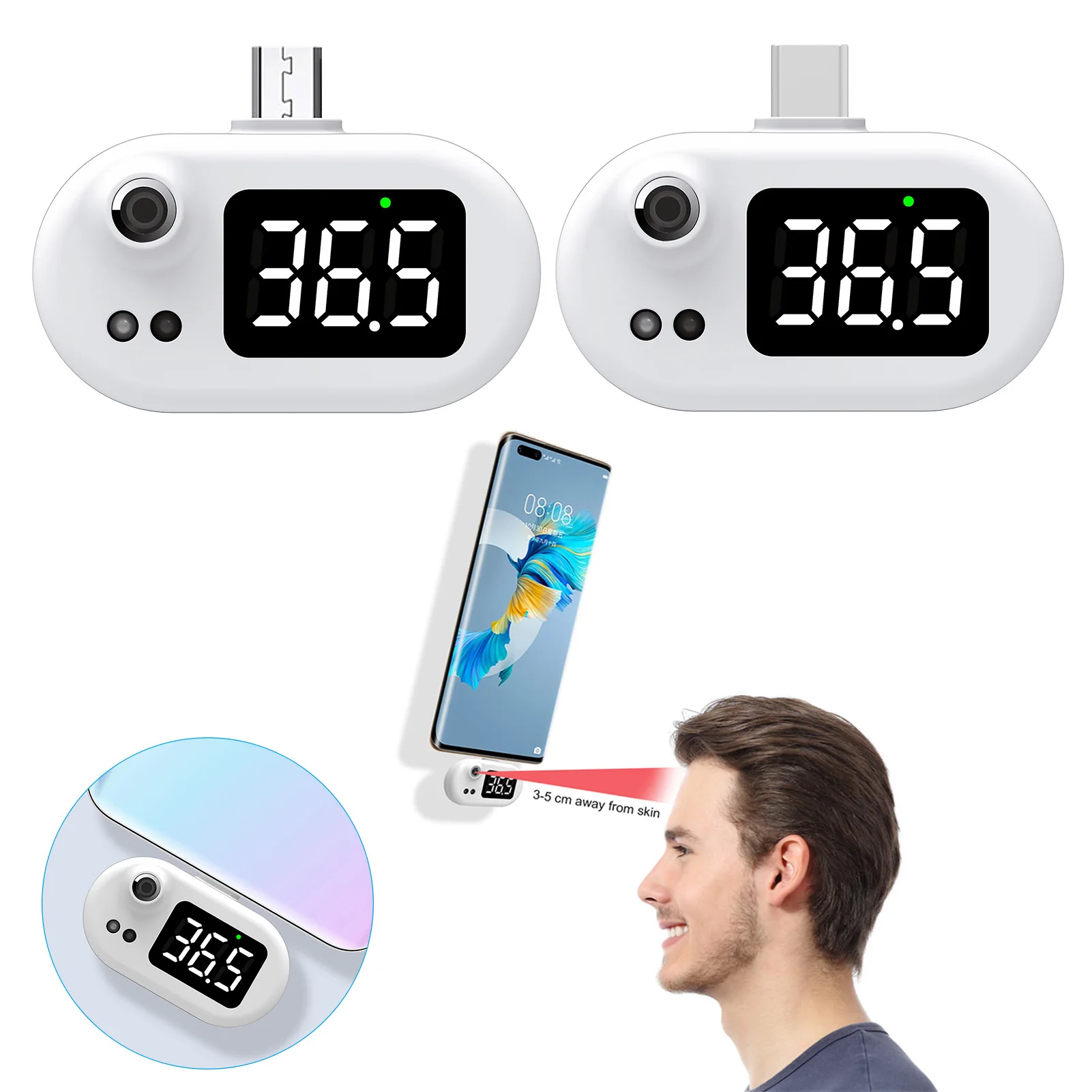 Портативный USB термометр мобильный телефон цифровой мини термометр со светодиодным дисплеем бесконтактный инфракрасный датчик температуры Type-C