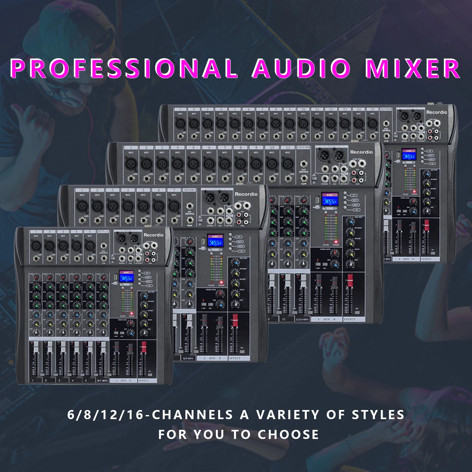 Микшерная консоль с цифровым микрофоном 16 каналов с USB BT 48 V Phantom Power профессиональный караоке DJ Аудио миксер