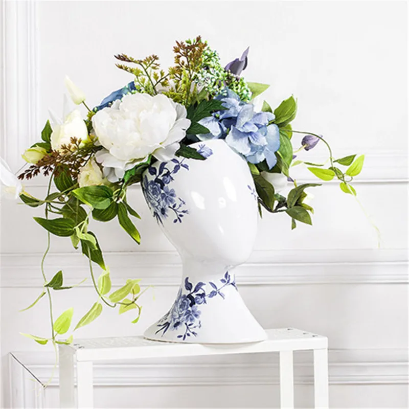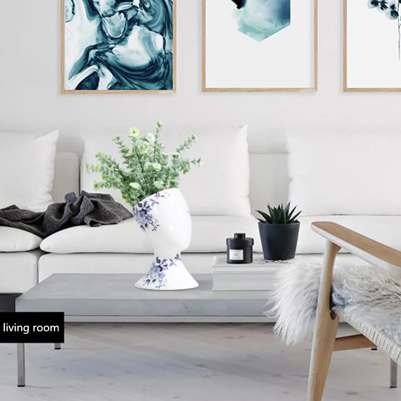 Отзывы о Керамическая Сине-белая ваза с абстрактным лицом для домашнего декора