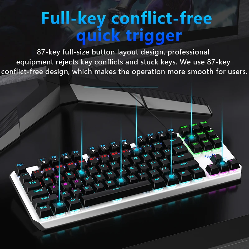Отзывы о Механическая клавиатура DGGR 87 клавиш с защитой от ореолов подсветкой кабелем Type C