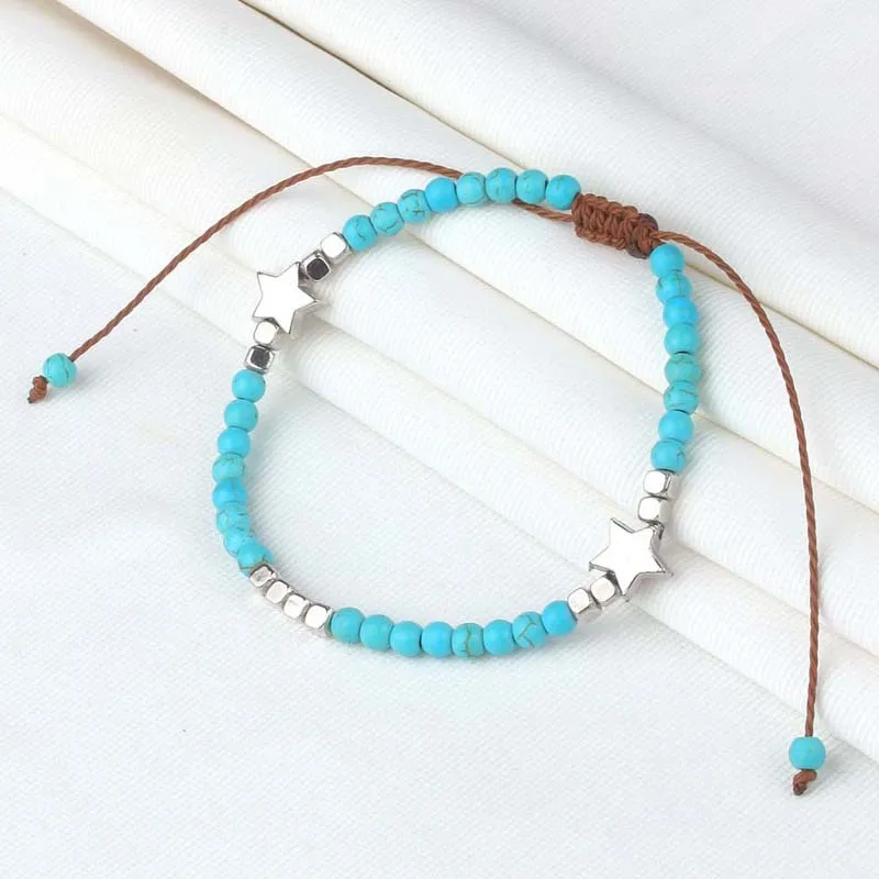 Отзывы о Браслет из бирюзовых бусин плетеный браслет ручной работы регулируемый со