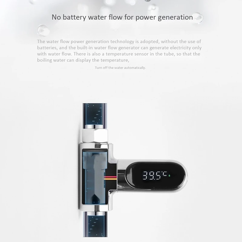 Быстрое улавливание изменений температуры воды38-40 ℃ Подходящая температура для купания ребенка, без батареи, поток воды генерирует электричество