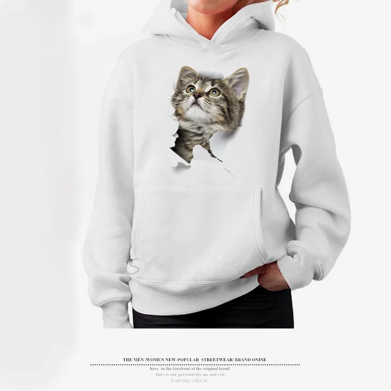 Отзывы о Симпатичные с капюшоном Китти Кэт толстовки и принтом для женщин Harajuku зимняя