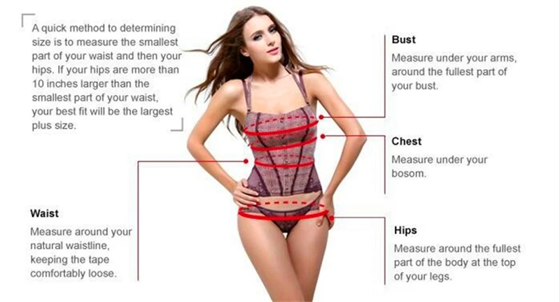4. Корсеты измеряются по размеру талии, поэтому, пожалуйста, выбирайте корсет в соответствии с линией талии, а не бюстом. Наши корсеты Overbust подойдут к любой форме тела