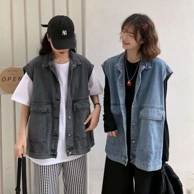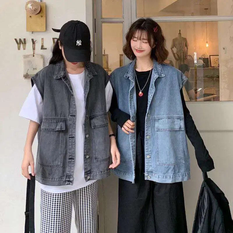 Отзывы о Женский джинсовый жилет BF Blue Denim винтажный черный с большими карманами в