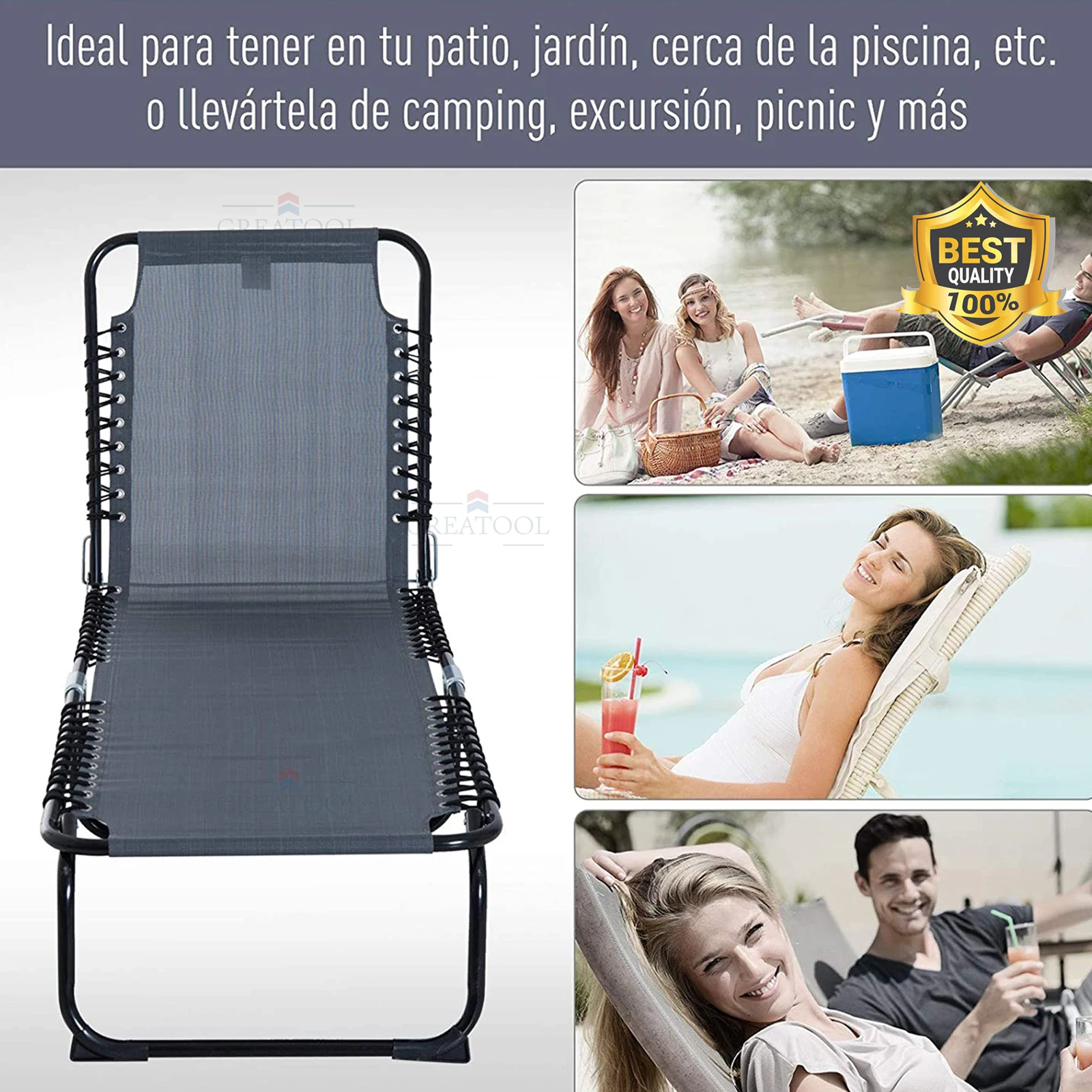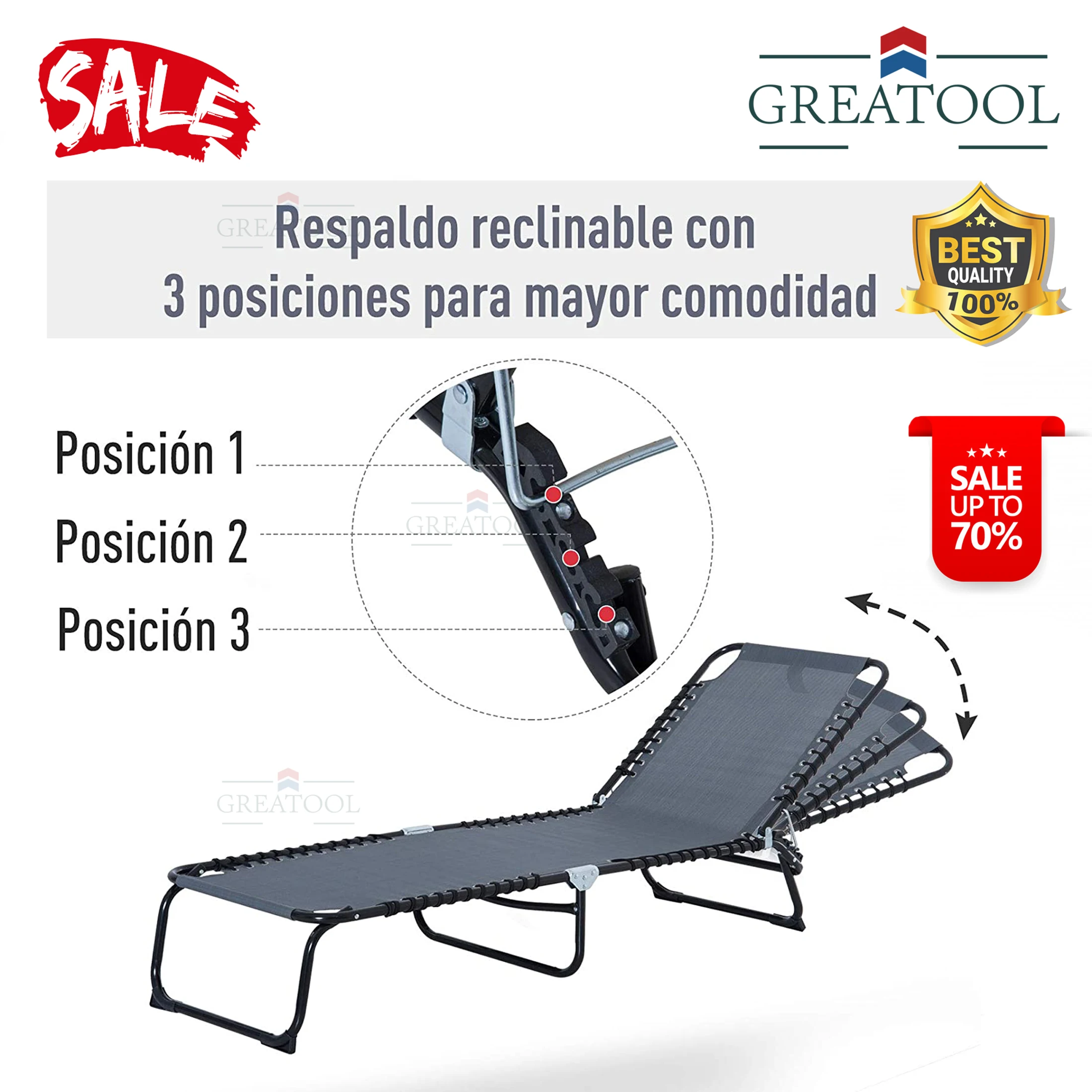 Складной дизайн через три складки этого шезлонга значительно облегчает хранение и транспортировку.