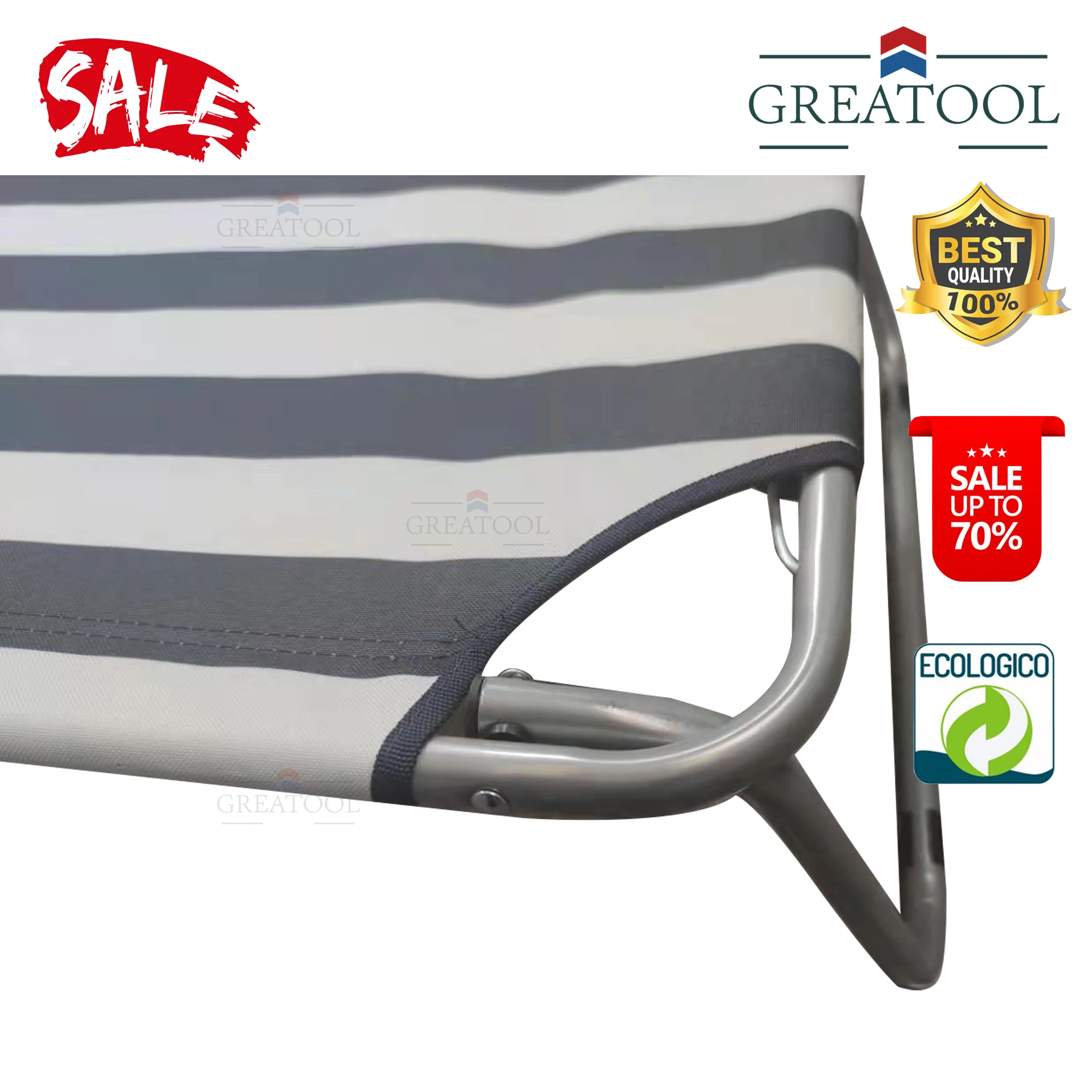 Сетчатая Ткань этого шезлонга крепится к его конструкции с эластичной веревкой, уменьшая напряжение, мышечный стресс и обеспечивая большой комфорт.