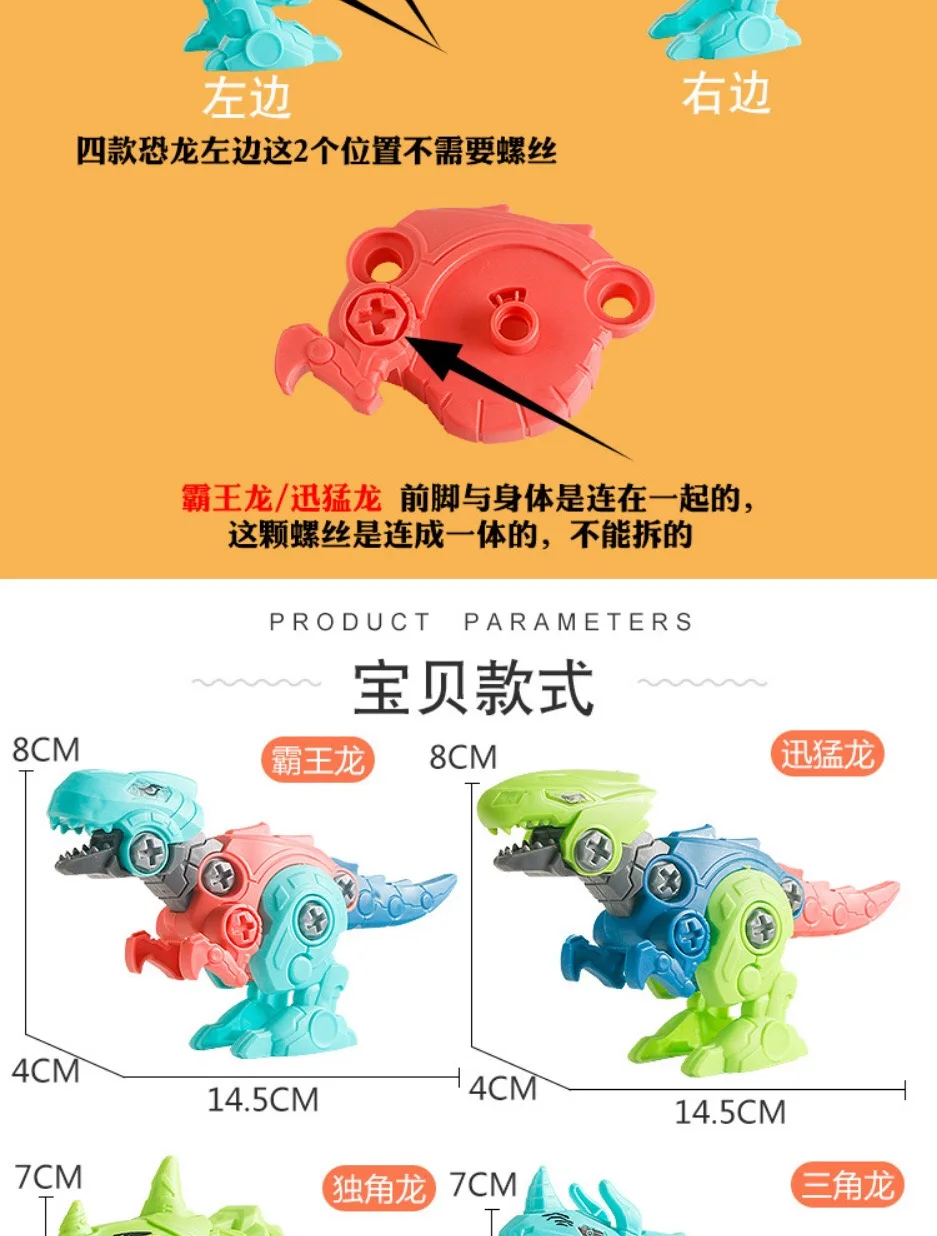 Название продукта: DIY разборка в сборе динозавр Условия: 100% новый (высокое качество) Материал: АБС-пластик Подходящий возраст:> 3 года Упаковка: Opp мешок Размер изделия: как показано на странице сведений