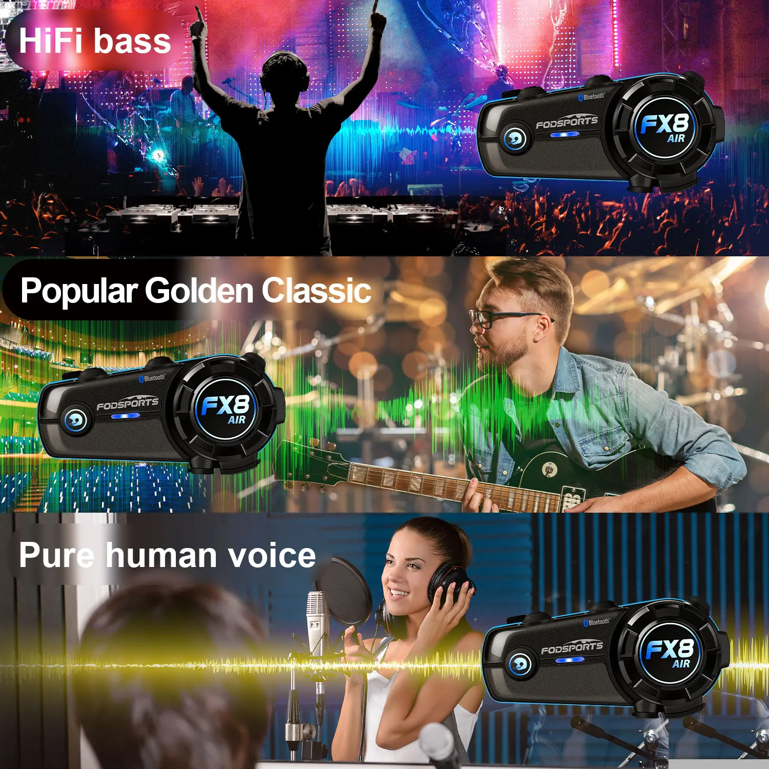 Fodsports FX8 Air Intercom мотоциклетный шлем гарнитура 2 Riders сигнал сильнее BT5.0 Intercomunicador Moto Bass Среднечастотный Тройник