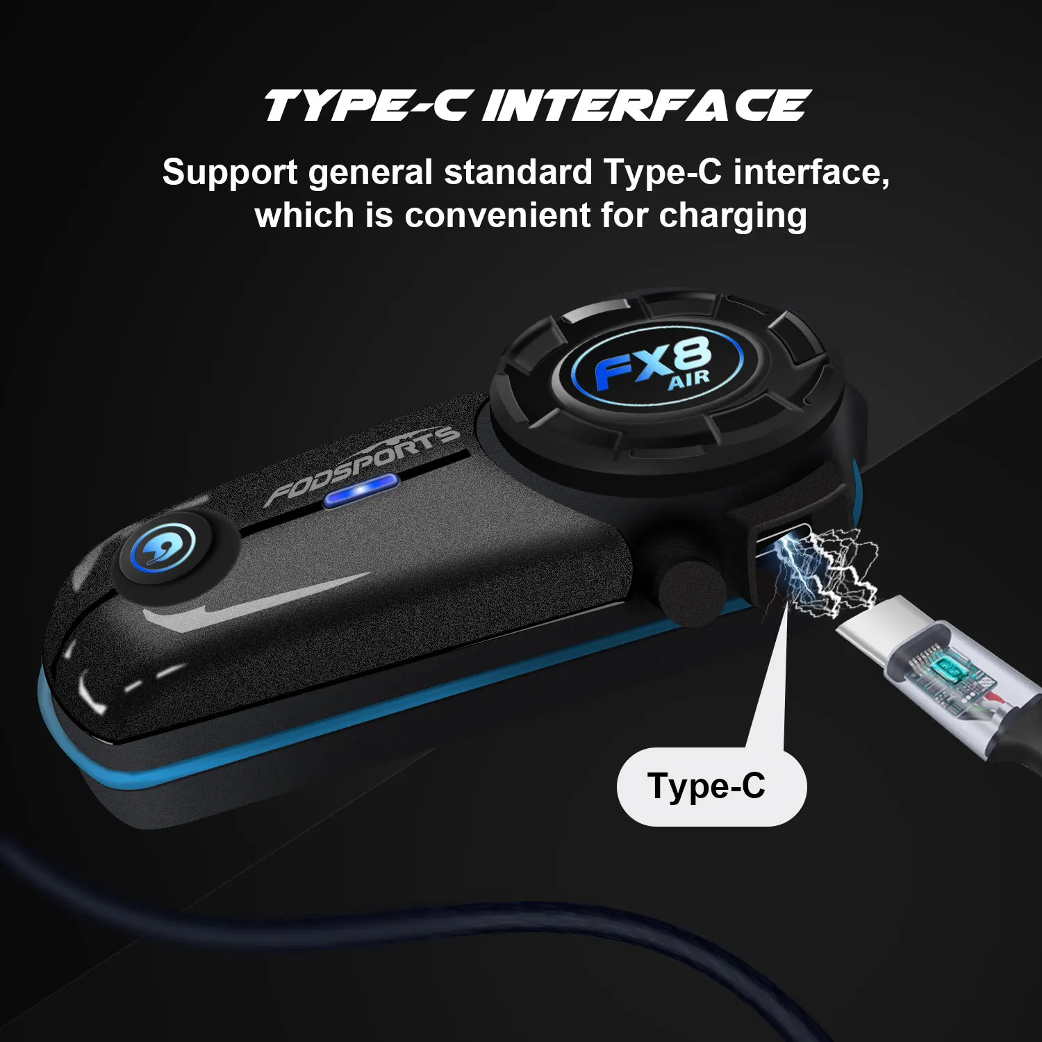 1.FX8 Air разработан специально для двух человек, чтобы ездить. Устройство может поддерживать соединение 2 всадников и говорить одновременно. Встроенная антенна внутренней связи, расстояние внутренней связи до 1000 метров;