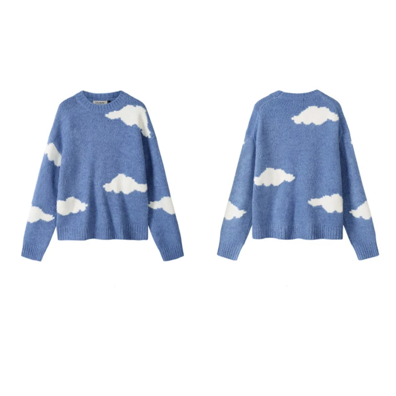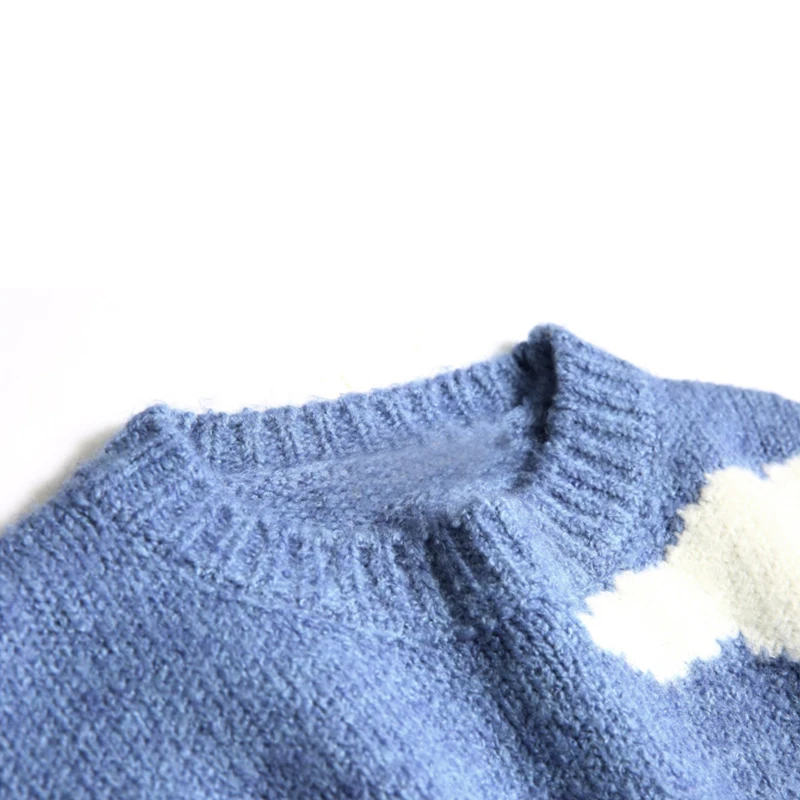 Отзывы о Облако Детский свитер Милый джемпер белого и голубого цвета в технике интарсия
