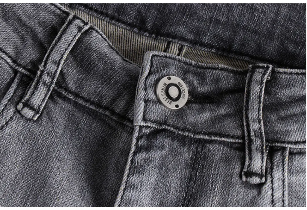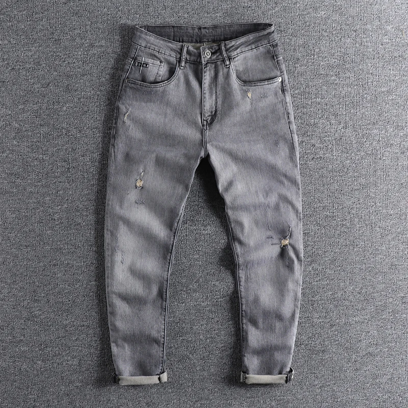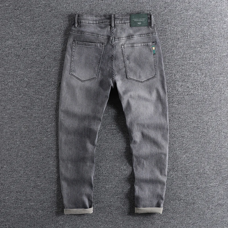 Отзывы о Мужские дымчато-серые джинсы тяжелые трикотажные Удобные зауженные брюки с
