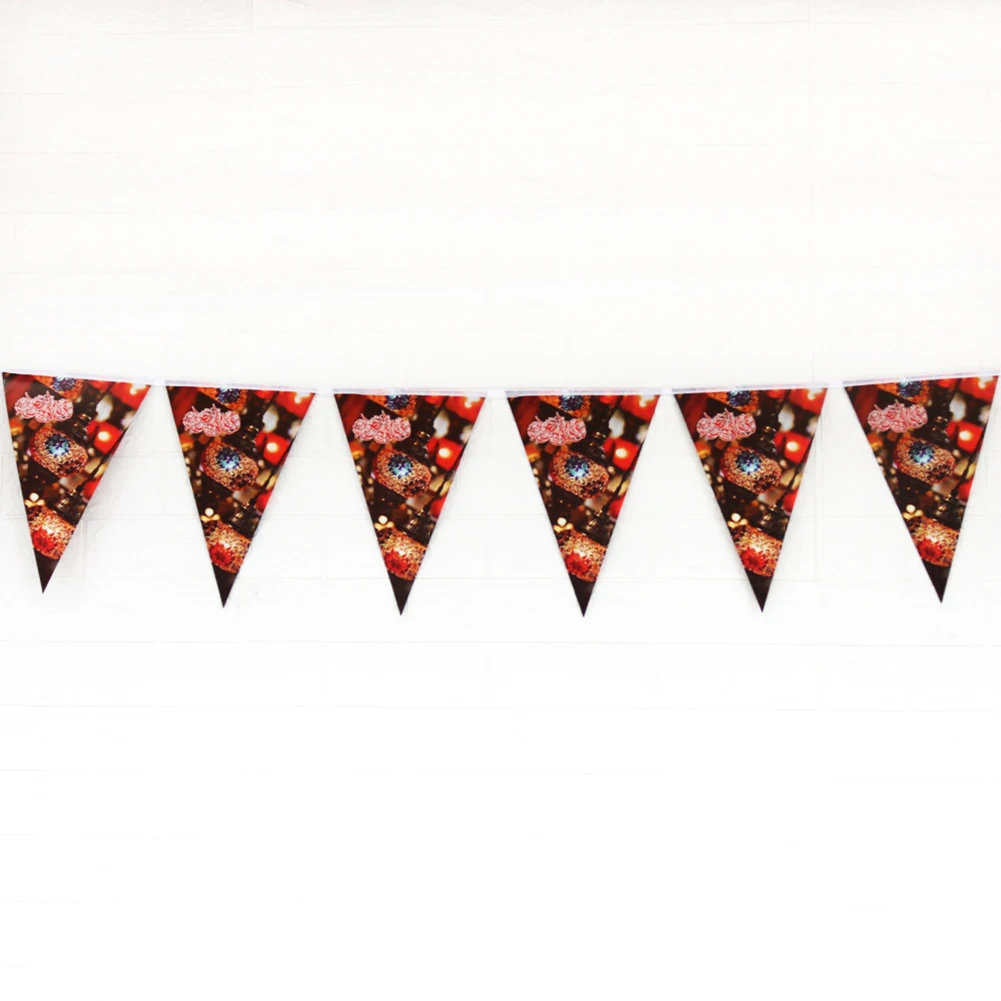 5, посылка в комплект входит: 1 комплект Рамадан Мубарак вечерние Треугольники баннер с ручкой в форме рога единорога (10 шт. картонная соединены вместе) с общей длиной около 2,6 м ~ 3 м/8,53-9.84ft. Мы подключили его для вас, и вы можете использовать его сразу после получения.