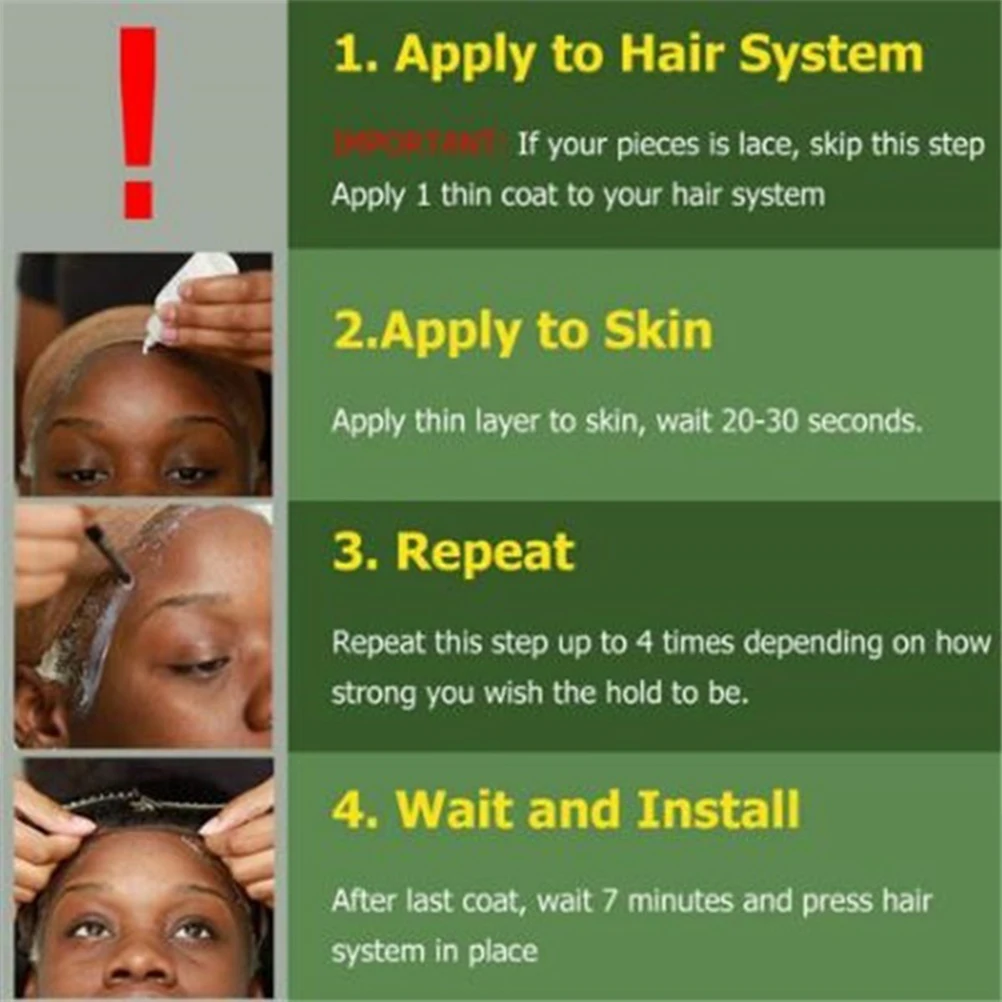 5. Душевное спокойствие при ношении парика или toupee приходит, когда вы можете отправиться в свой день, не беспокоясь о том, что ваша система волос движется или падает из натуральных масел кожи или влажности. Наш склеивающийся клей является водонепроницаемым и маслостойким, чтобы гарантировать, что ваши волосы выглядят и чувствуют себя как можно более естественными!