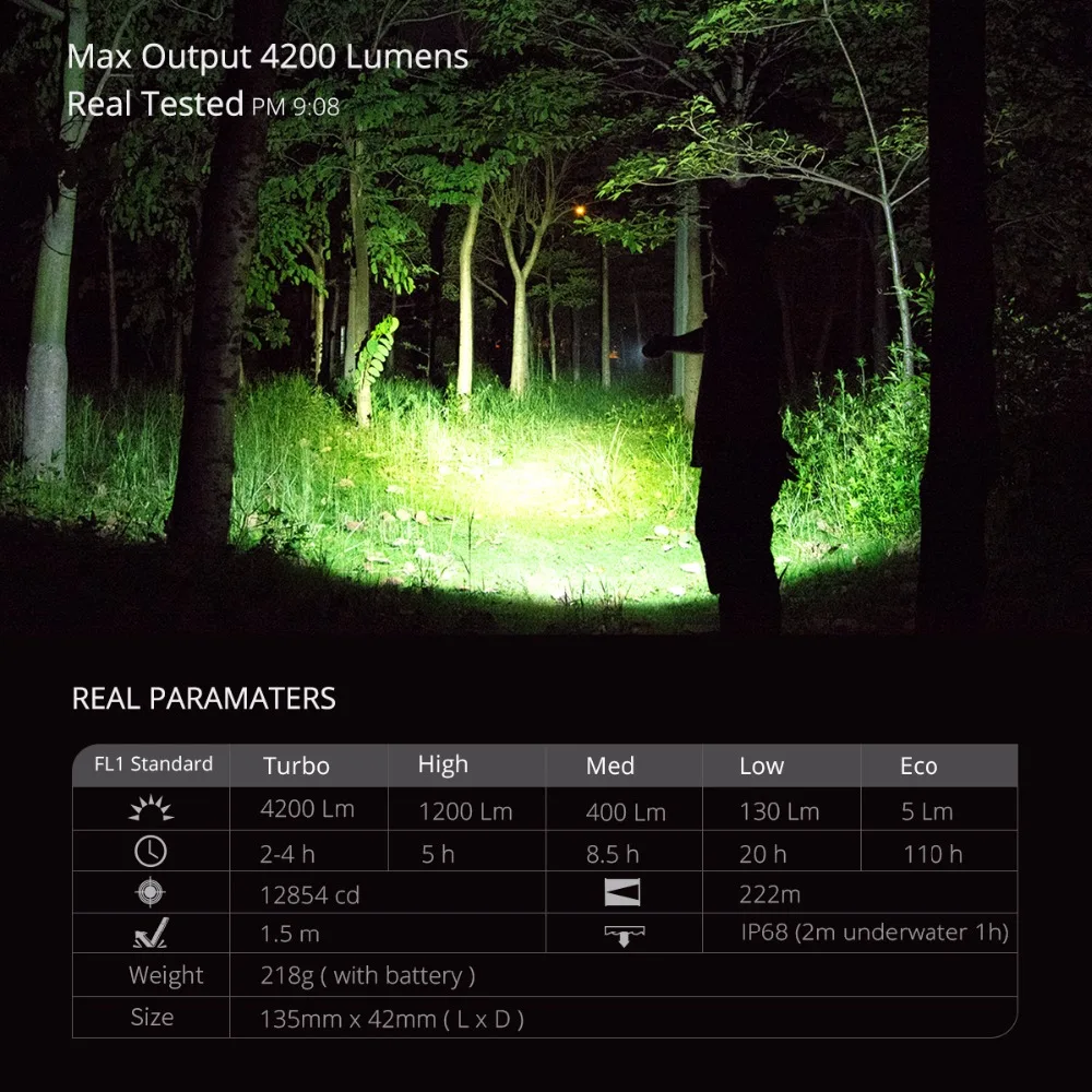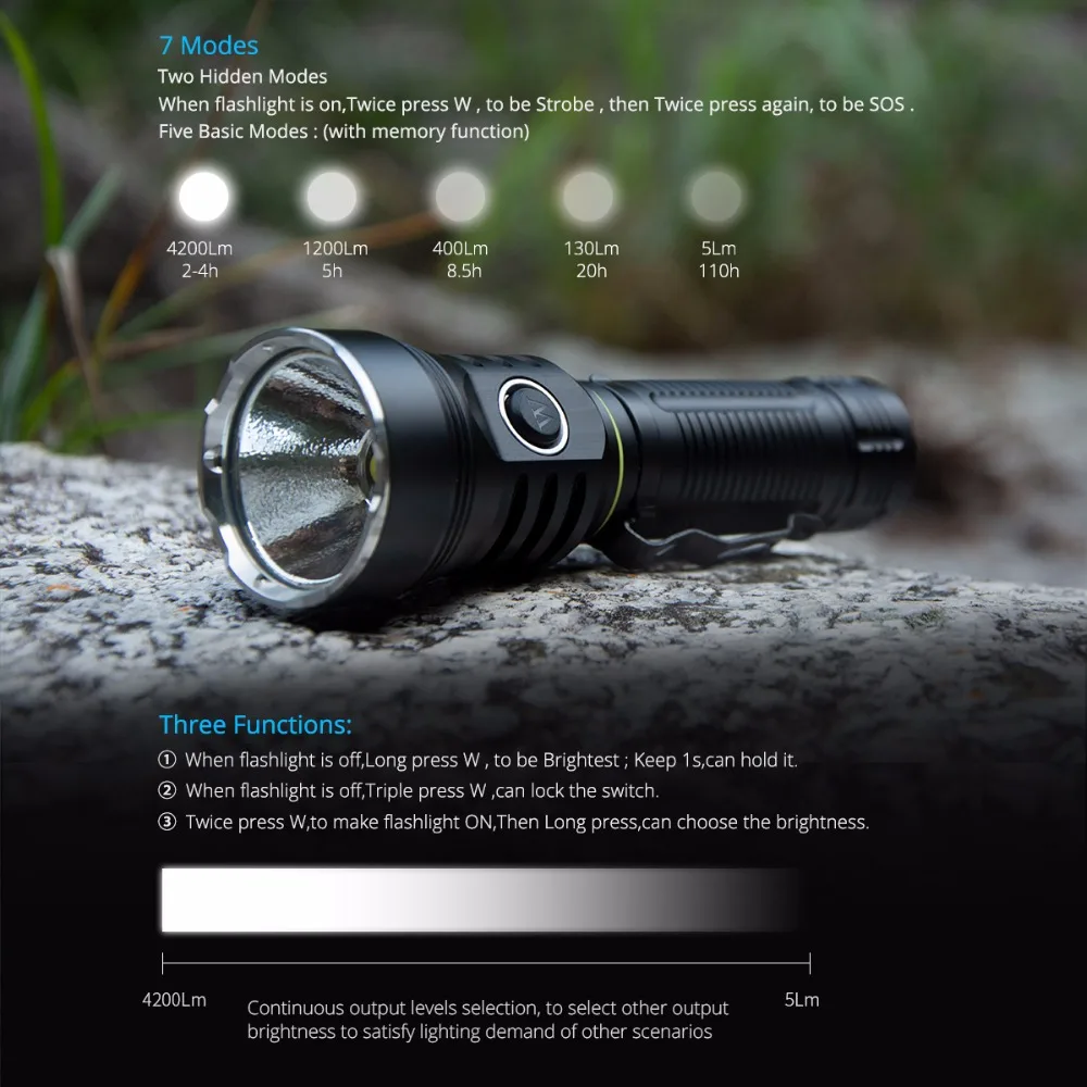 Отзывы о Светодиодный фонарик WUBEN 4200 люмен CREE XHP70 LED A21 Ультра-яркий Перезаряжаемый 21700