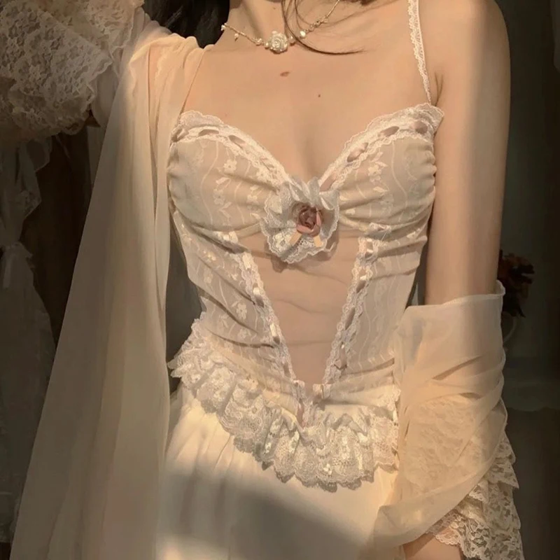 Отзывы о Y2k летний розовый Французский Ретро Изысканный кружевной корсет топик на