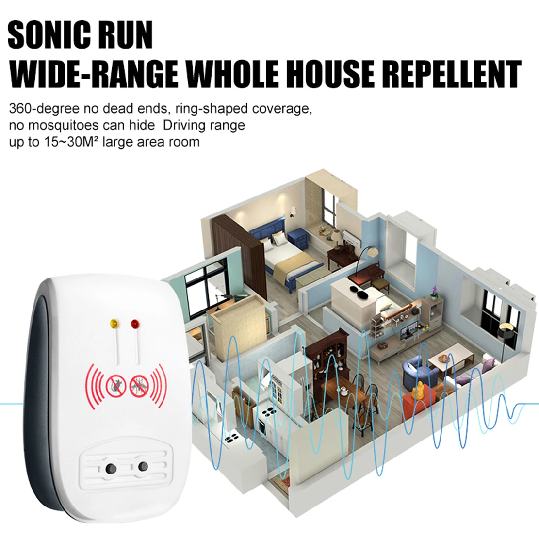 Диапазон отпугивания: 15 ~ 30 ㎡.