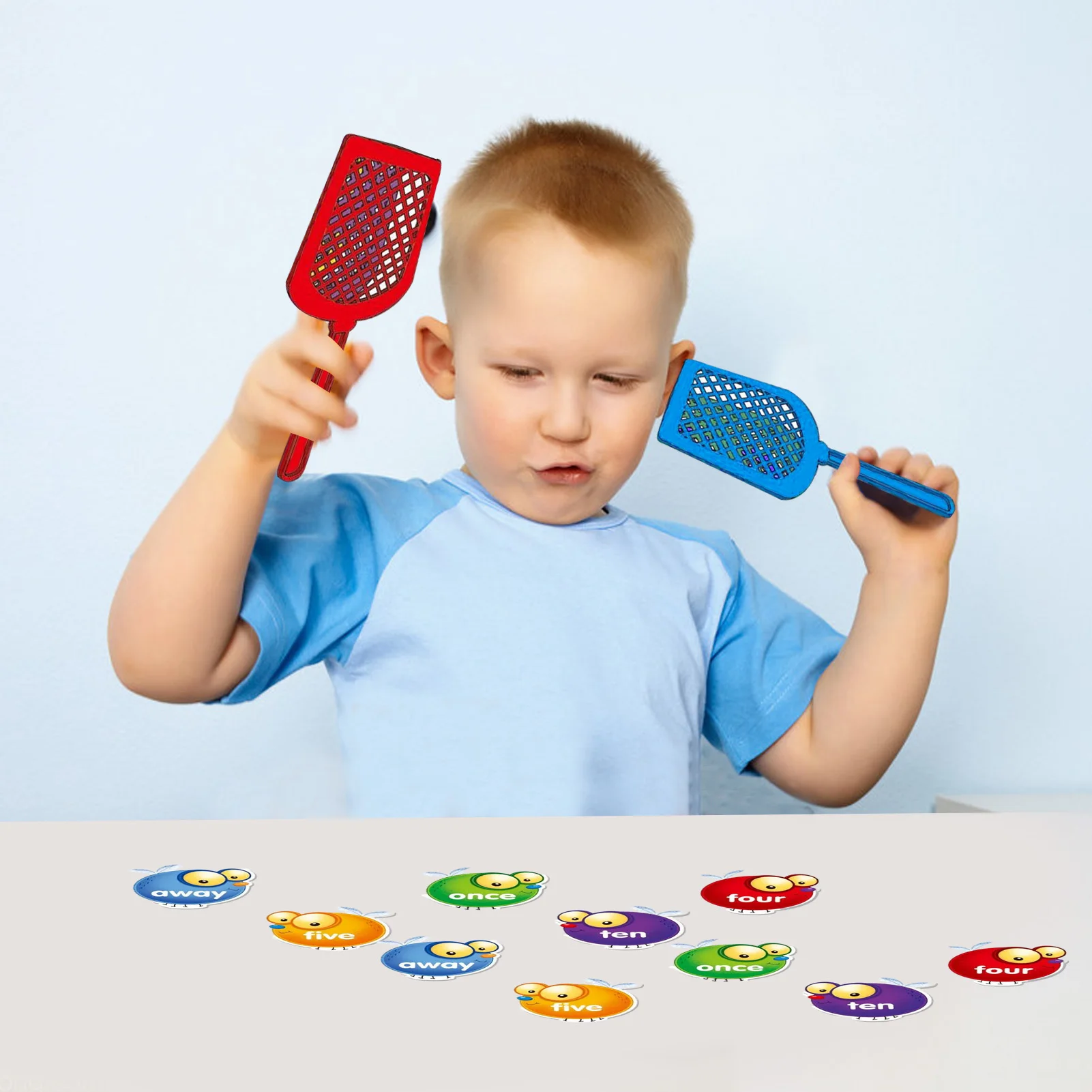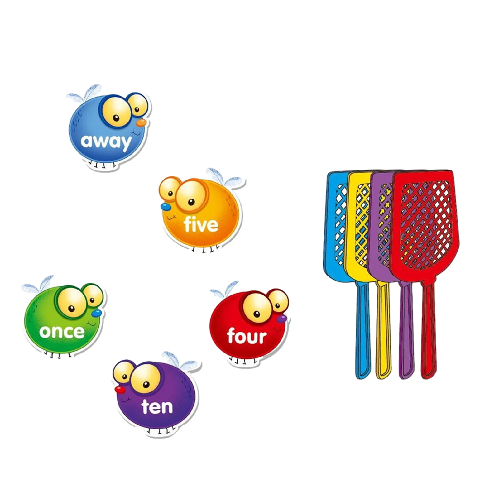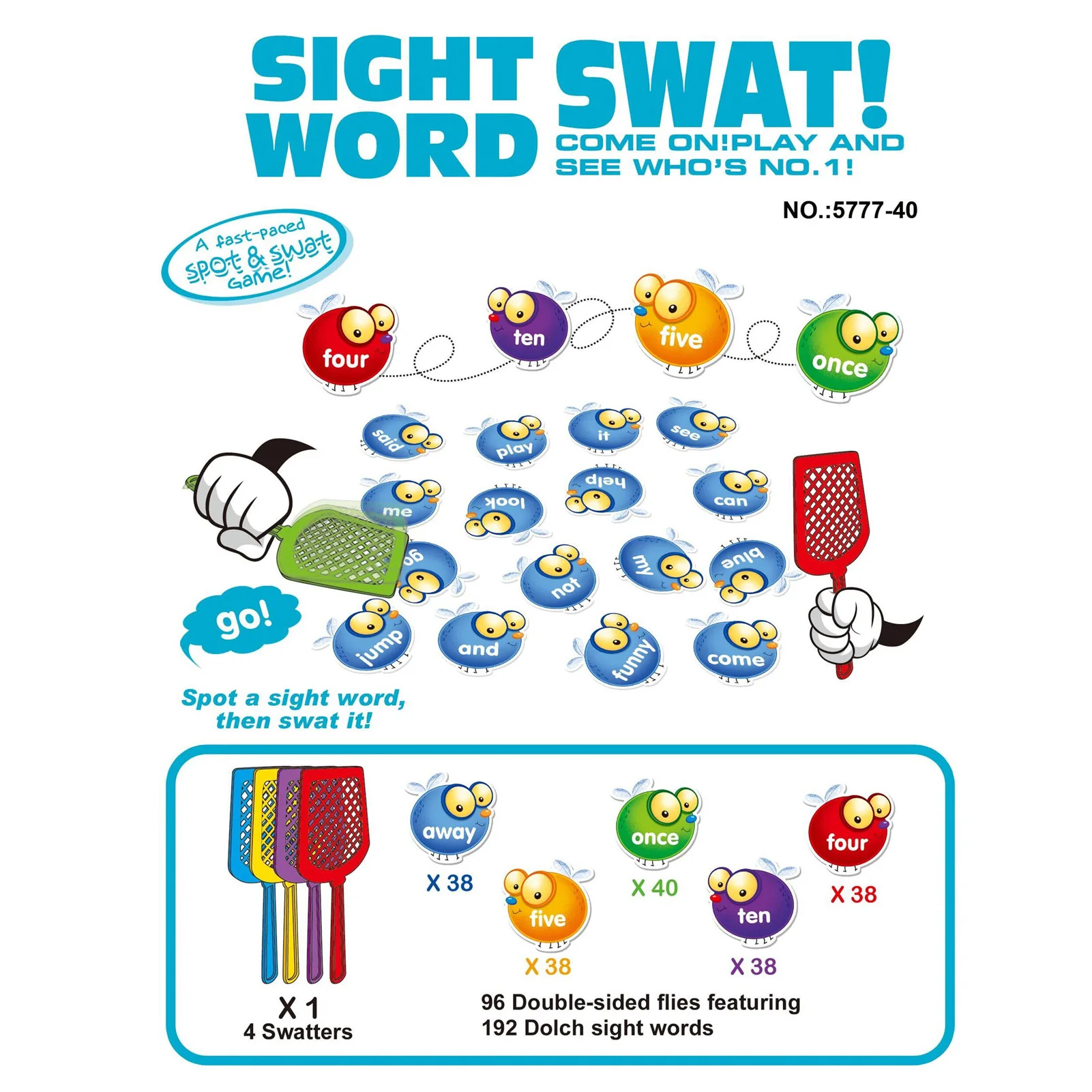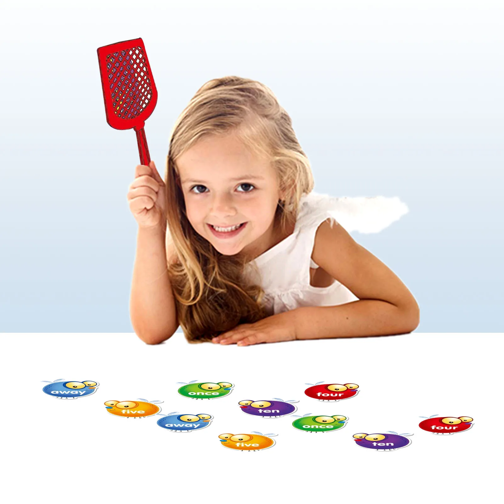 3. Оснащен 4 мухобойками разных цветов, 192 двусторонними картами в форме мухи, 5 разных цветов, каждый цвет представляет разную сложность
