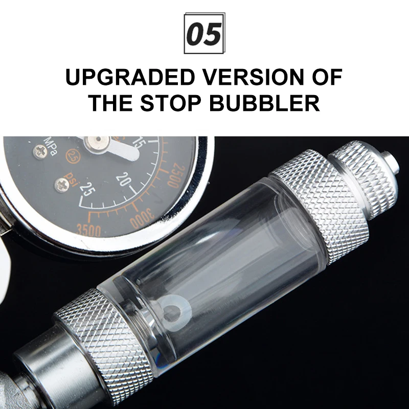 Основная функция редукционного клапана заключается в снижении давления источника воздуха и достижении стабильного значения для получения стабильной мощности источника воздуха. Двойной измеритель отображает внутреннее давление в бутылке и выходное давление соответственно, барботер счетчик точно контролирует объем воздуха. Клапан тонкой регулировки используется для регулировки выхода газа.