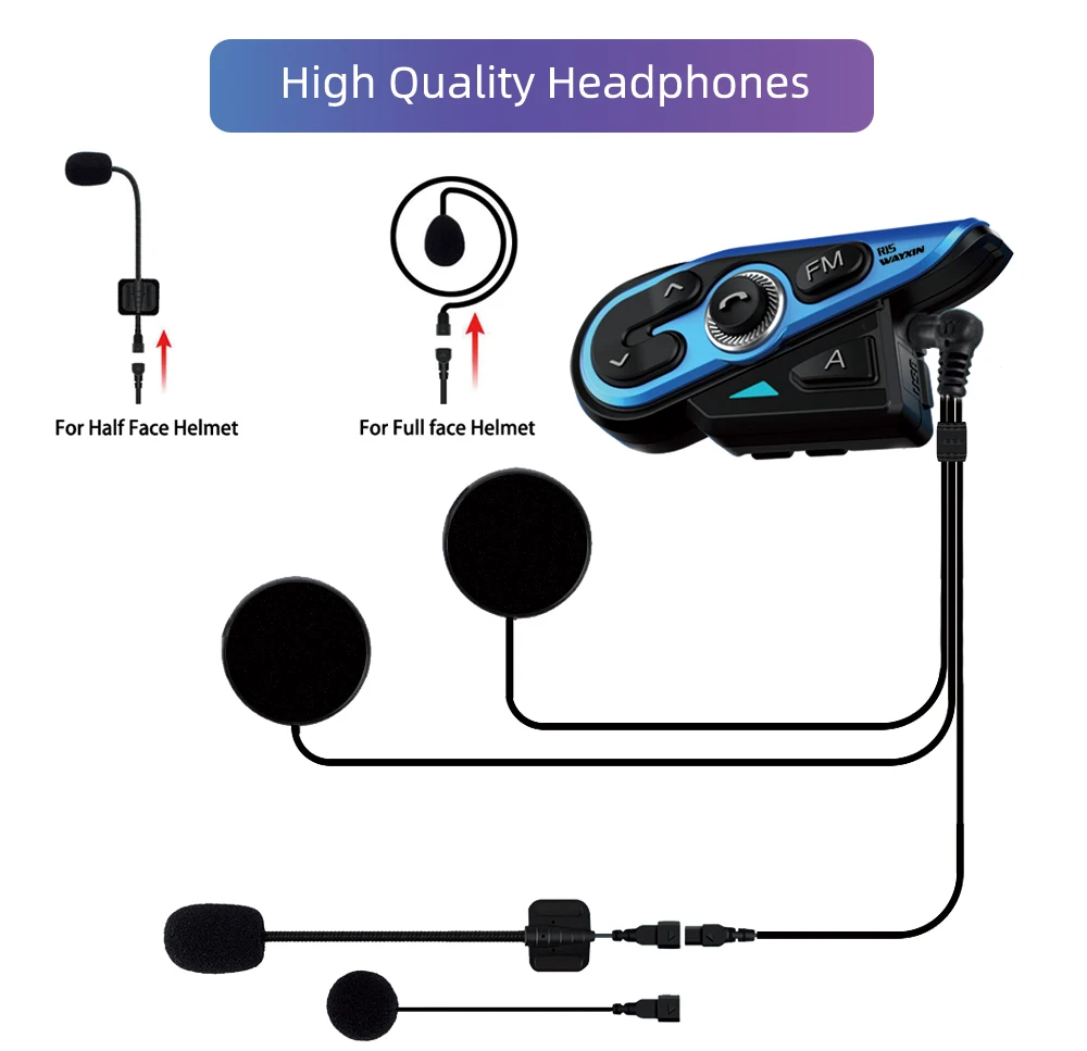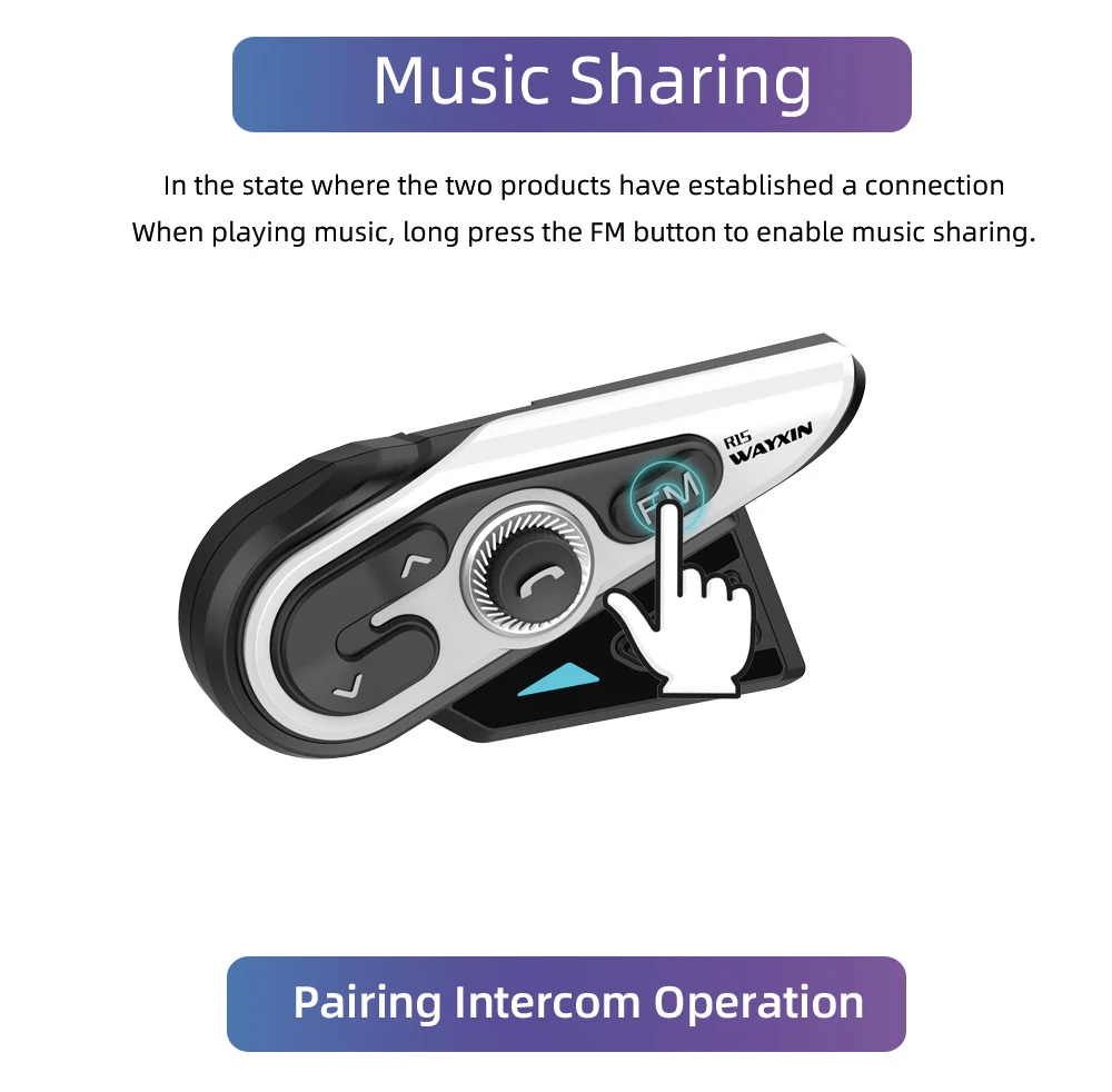 Отзывы о WAYXIN R15 1pcs Motorcycle Bluetooth Intercom Helmet Headsets 2 Rider 1200M BT Wireless intercom System Interphone FM WaterProof - купить по