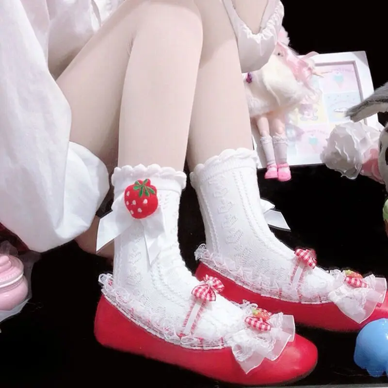 Отзывы о Японская Лолита до середины икры носки с кружевной отделкой женские клубничного