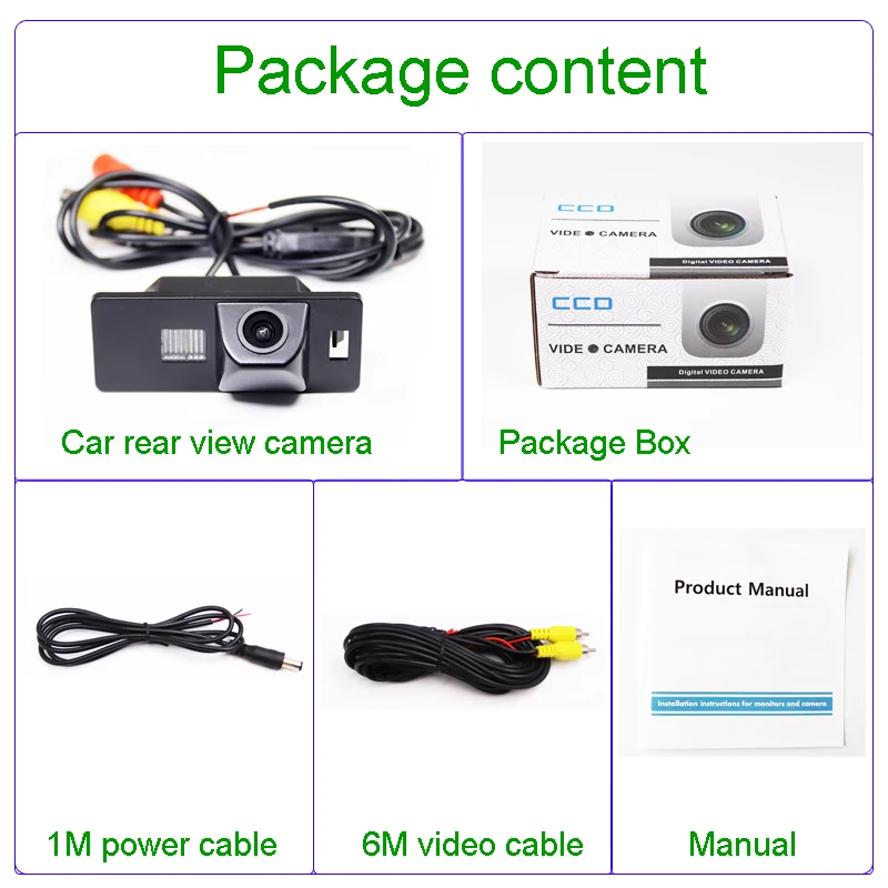 * Не нужен блок пути, не нужен интерфейс CANBUS или OBD, встроенный модуль треков заднего хода.* Импортные чипы CCD Реверсивный трек, четкость изображения, стабильность, хороший эффект ночного видения.1. Пиксели: 960*7202. Мощность: 12 В постоянного тока3. Угол обзора: 150 градусов4. Датчик изображения: CCD5. ТВ система: NTSC ( PAL опционально).6. Горизонтальное разрешение: 600TV линии7. Синхронизация. Система: внутренняя8. Отношение S/N: >48 дБ9. Электронный затвор: от 1/60 до 1/100 000 секунд10. Видеовыход: 1.0Vpp, 75Ohm11. Баланс белого: Авто12. Водонепроницаемость: IP6813. Длина видеокабеля: около 6 м