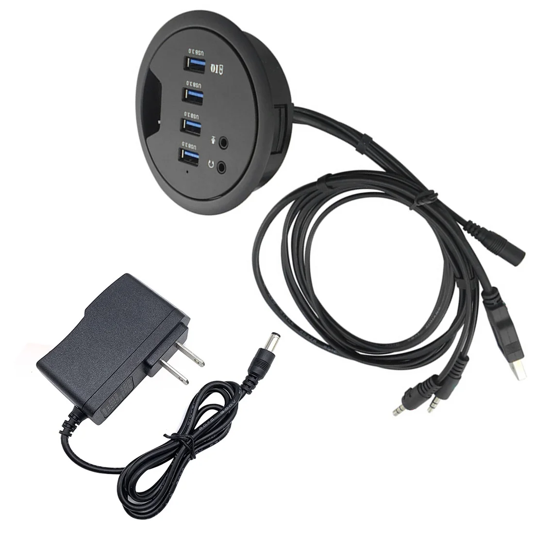 Четырехпортовый USB 3,0 круглый Концентратор + аудио + блок питания ЕС/США
