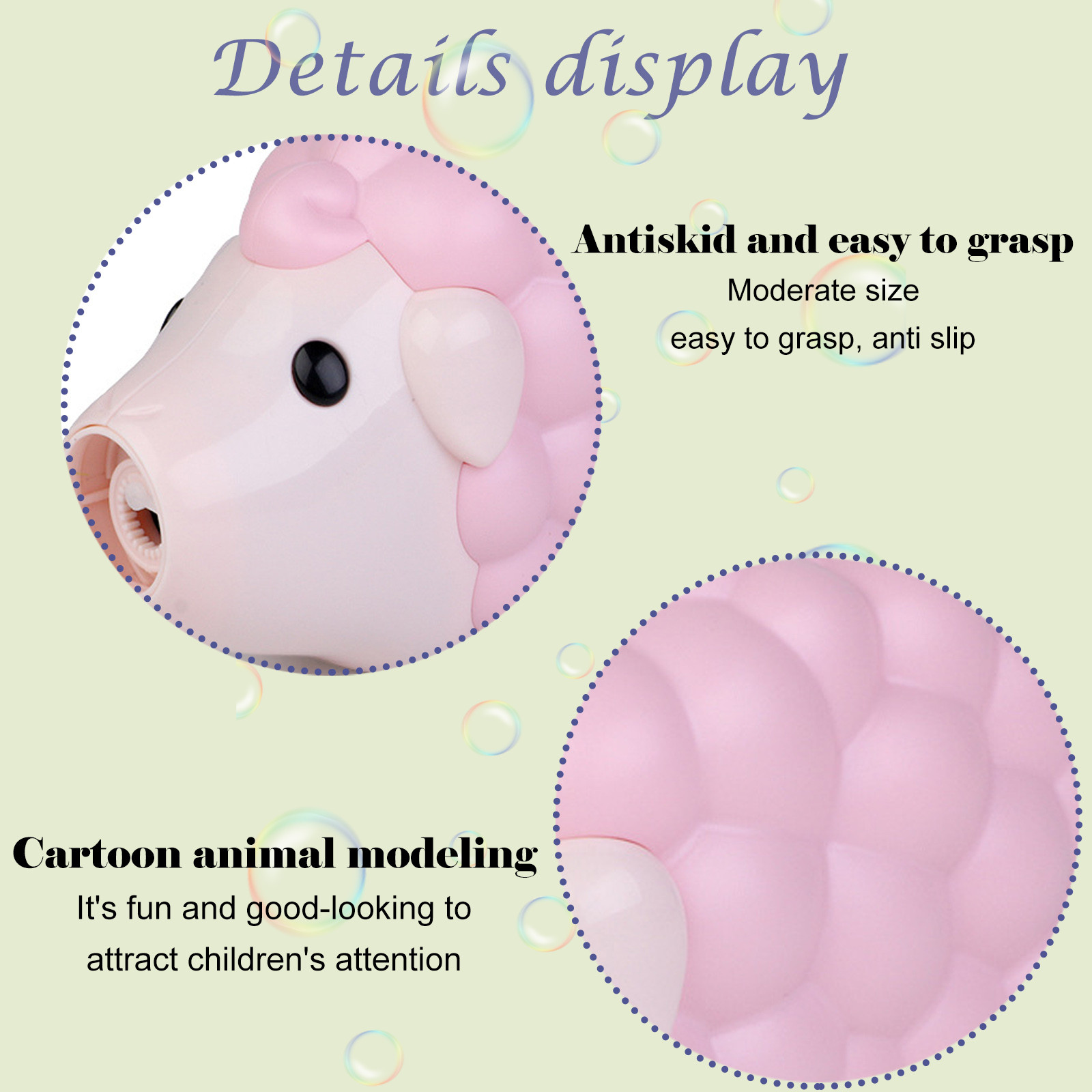 - Super Quiet Motor: Almost noiselessly streams out hurricaness of wild soapy fun, so people can immerse themselves into a dreamy world without being disturbed